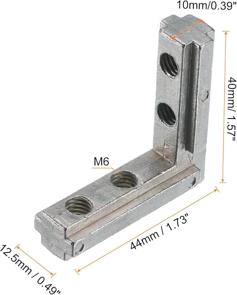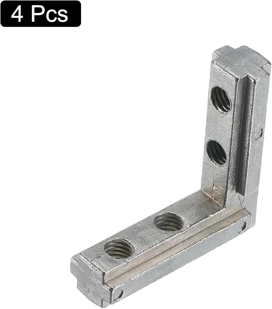 The L shape hidden corner bracket is used for setting up a right angle connection of the two aluminum profiles, insert the two ends of the L bracket into the groove of the profile, and tighten the set screw to fix the two profiles.