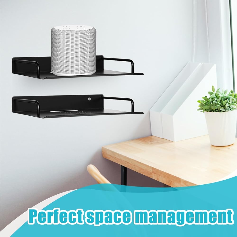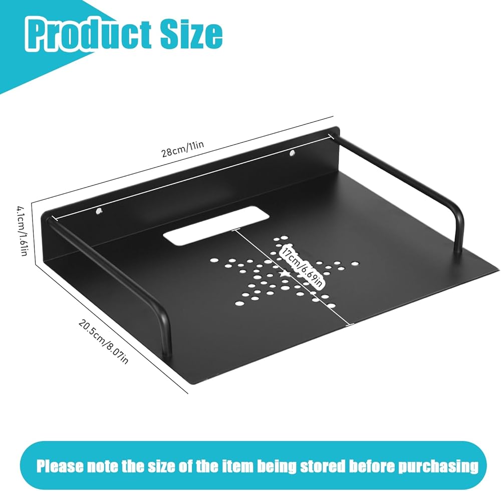 💝【About size】: The package includes two wall floating projector racks, each measuring 8.27"D x 11.26"W x 1.65"H, please pay attention to the size of the stored items before purchasing, make sure the stored items can be placed. Wall mounted shelves are not only It can be used to place your Wi-Fi router, projector, and can also be used to store and place small electronic devices such as smart speakers, cable TV boxes, DVD players, smart speakers, AV equipment and other small devices.