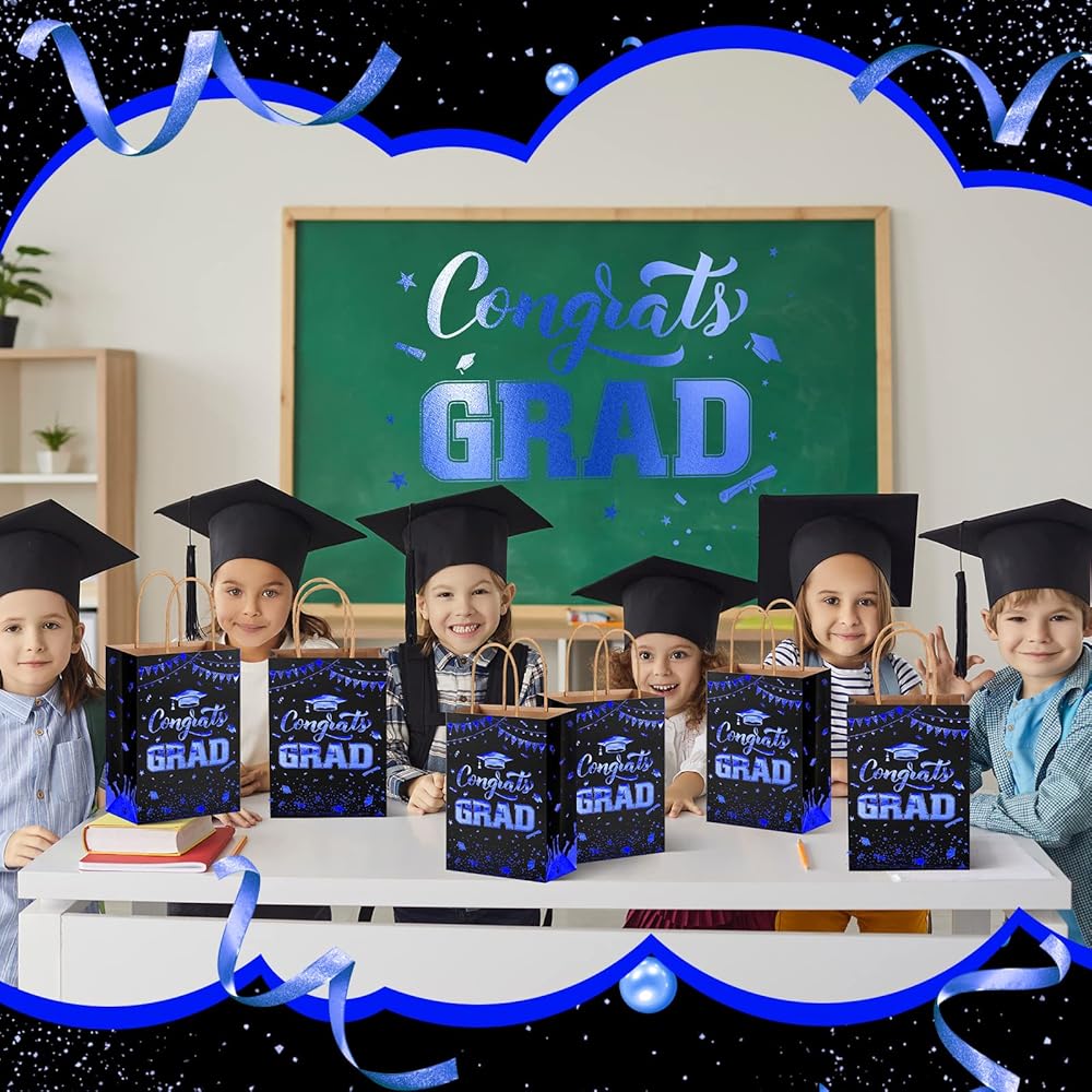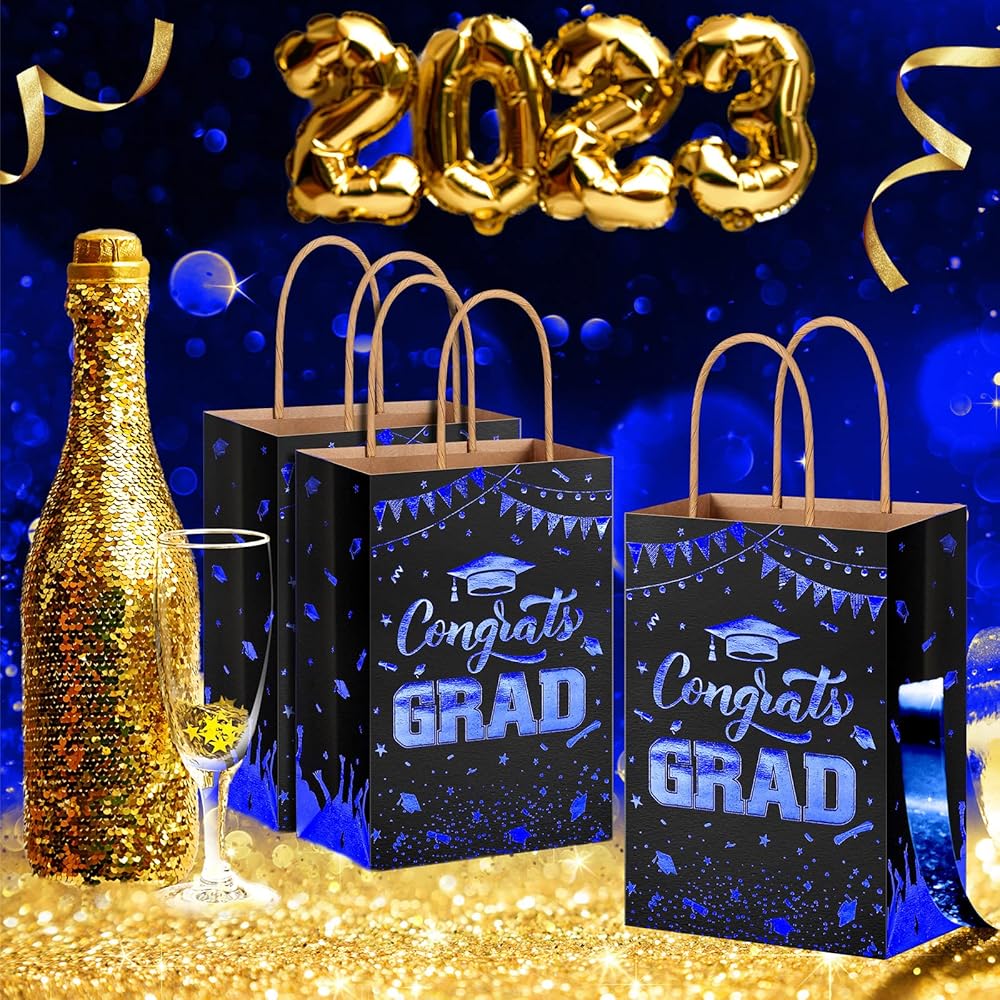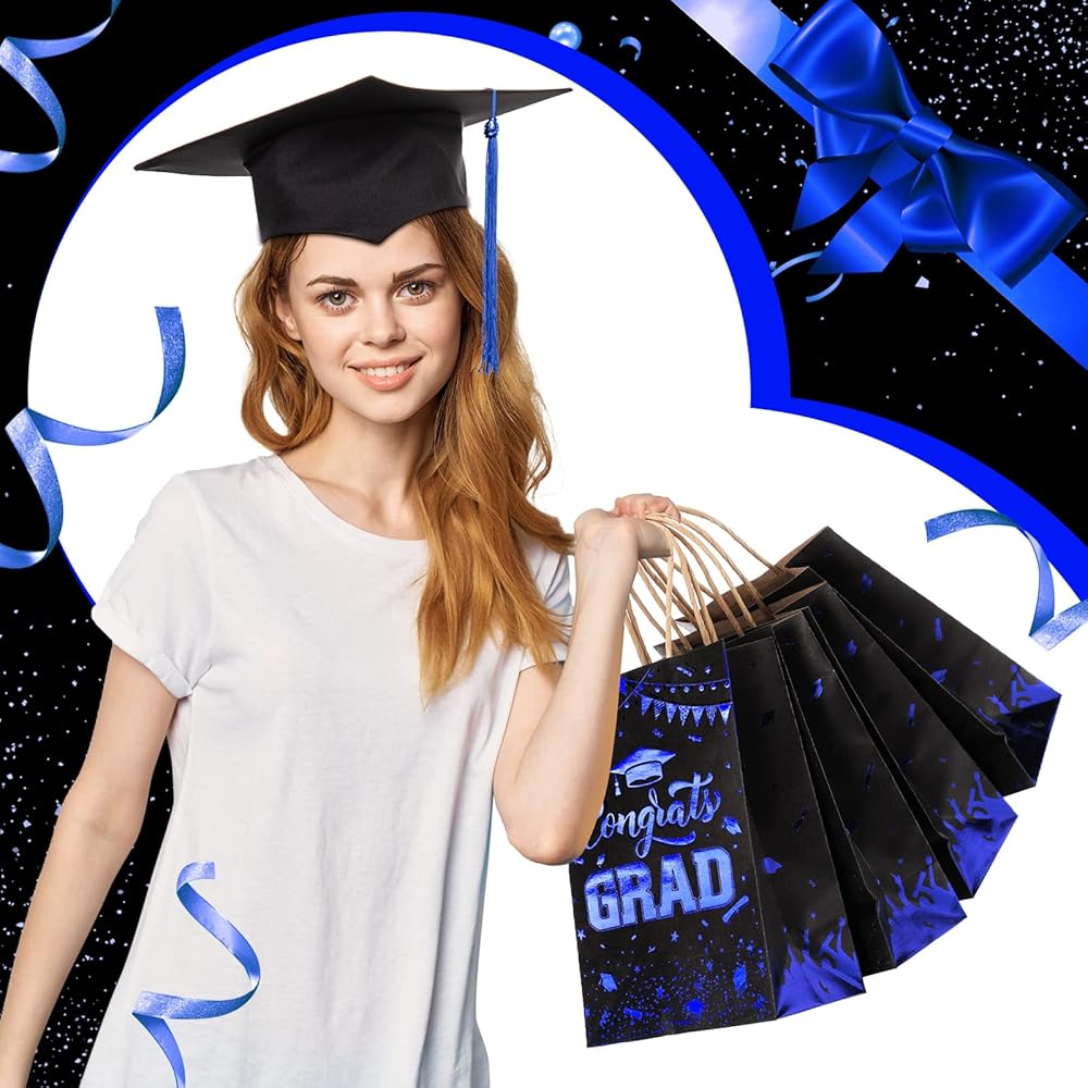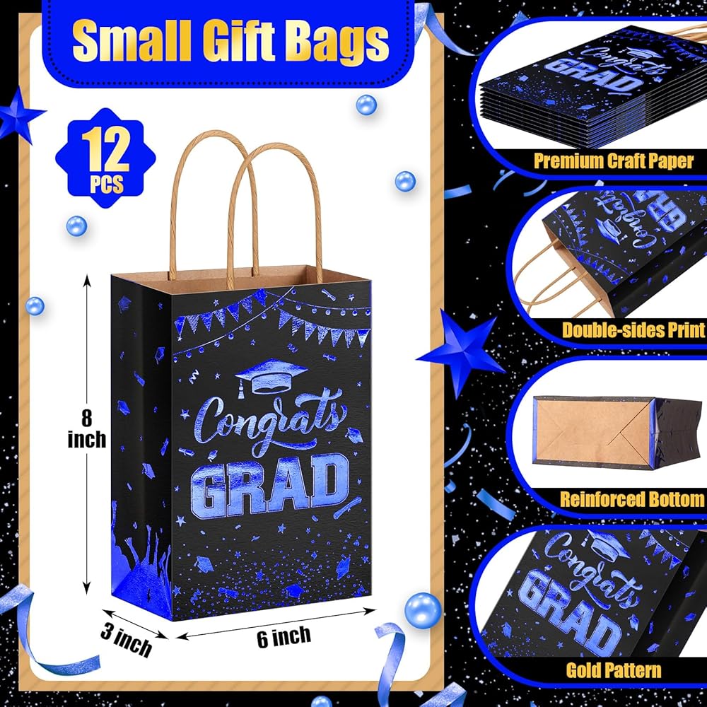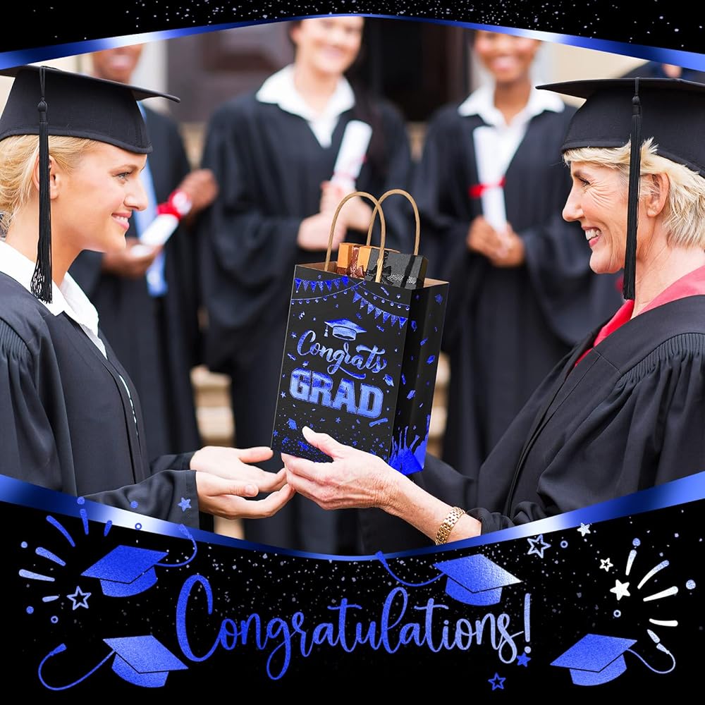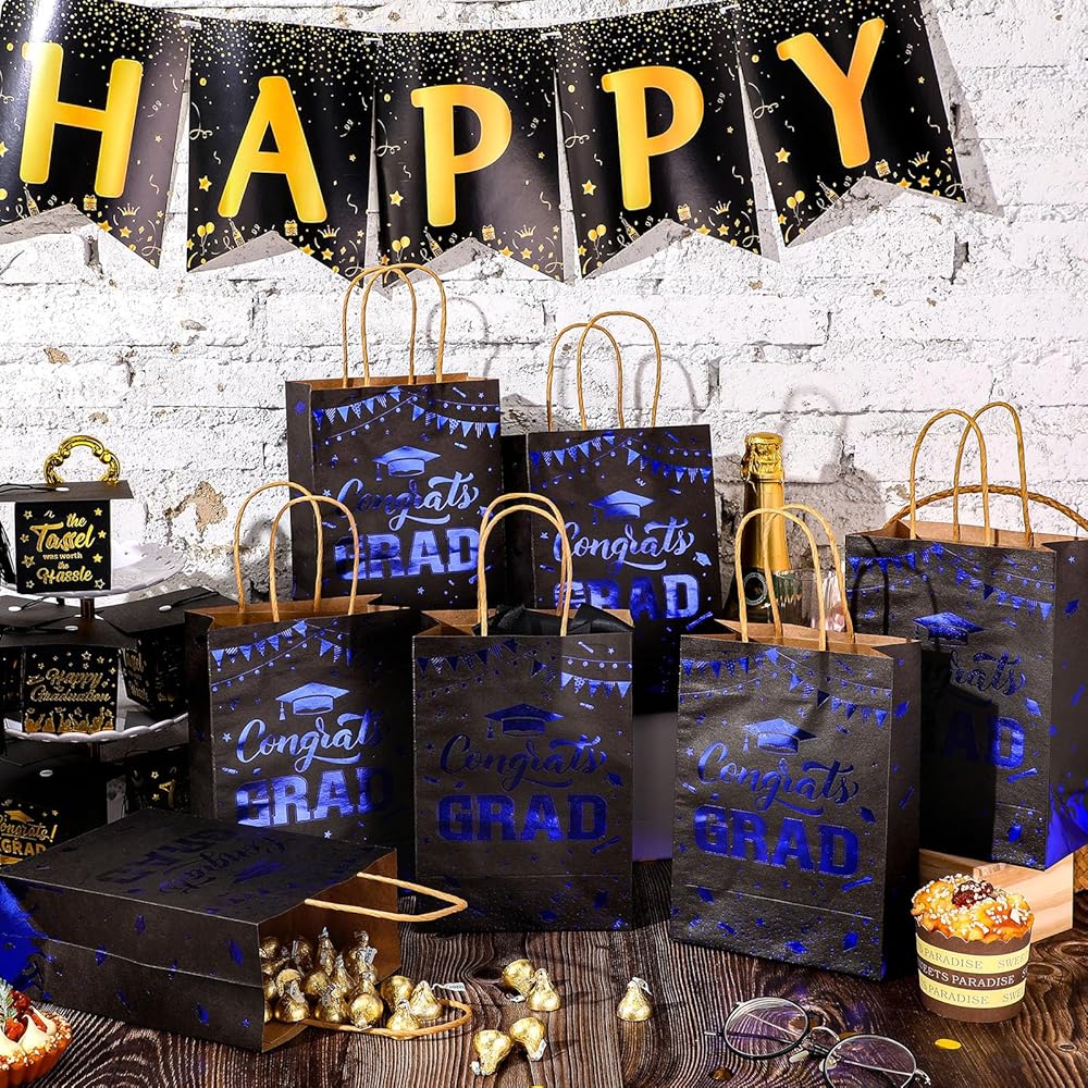 مجموعة حقائب هدايا التخرج: سوف تحصل على 12 قطعة من أكياس المكافآت الورقية، مصممة بمقابض، مريحة في الاستخدام، والكمية الكافية يمكن أن تساعدك على الترحيب بضيوفك أثناء مناسبات التخرج.