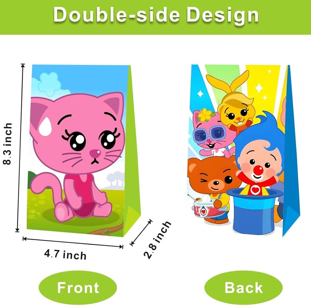 【Plim Plim Party Supplies】Package includes 12pcs Plim Plim birthday party bags with 4 different patterns. Perfect for Plim Plim party candy bags, goodie bags, treat bags, gift bags.