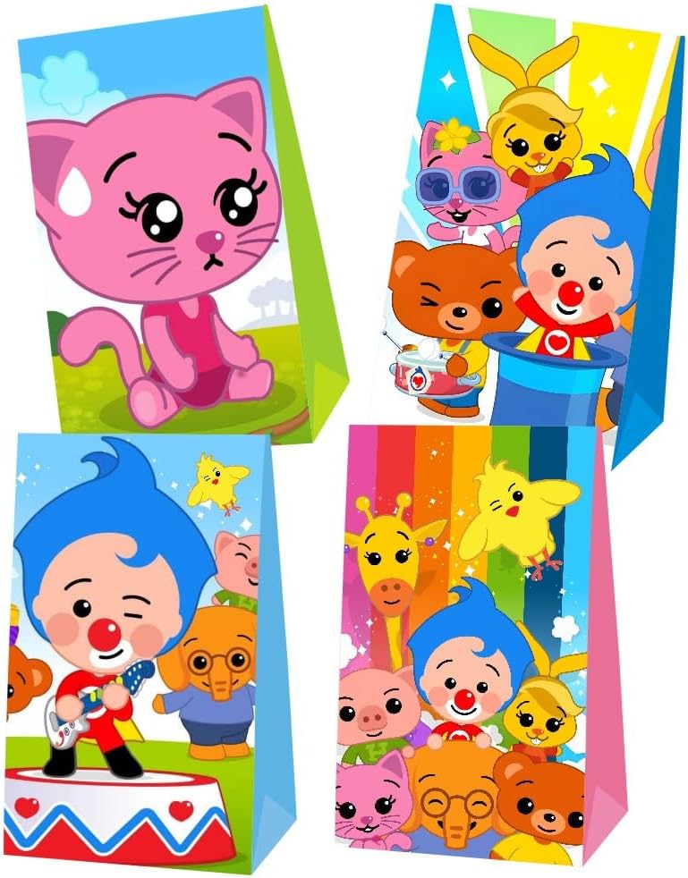 Package includes 12pcs Plim Plim birthday party bags with 4 different patterns. Perfect for Plim Plim party candy bags, goodie bags, treat bags, gift bags.