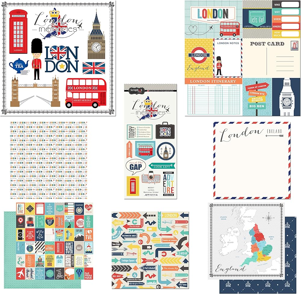 Proudly made in the USA, Scrapbook Customs city memories scrapbook kits are perfect for scrapbooking your favorite vacation photos. The items included are educational, so they are perfect to help your kids with their reports. Kit includes a double-sided journal sheet that is perfect to write down memories of your travels and highlight memories with personal photos. Includes 2 city specific 12x12 papers, 1 12x12 country map and 2 12x12 background papers. It also includes a page of 48 paper cut out mini cards and a 12-Inch by 12-Inch city memory sticker cut out with the country shape, fun phrases, and images. A city memory sticker that has phrases, images and city specific images will add to the details that can be embellished on projects also. Our papers and stickers are made of high quality cardstock that are acid free and lignin free