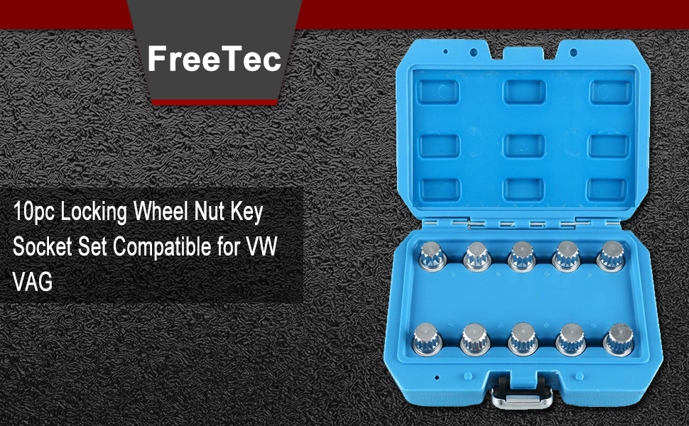 - مجموعة رئيسية من القطع متعددة الخطوط لإزالة صواميل عجلة القفل في معظم مركبات VAG.