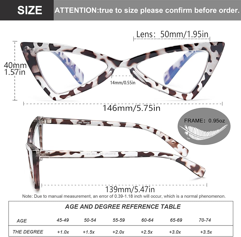 👓【نظارات قراءة تحجب الضوء الأزرق】نظارات قراءة عين القط EYEURL مع حماية من الأشعة فوق البنفسجية 400، وعدسات تحجب الضوء الأزرق، مضادة للوهج وتقطع أكثر من 95% من الضوء الأزرق الضار. يقلل من إجهاد العين وعدم الراحة الناتج عن فترات طويلة من القراءة، واستخدام الكمبيوتر الشخصي / التلفزيون / الهواتف / الكمبيوتر المحمول والعمل تحت أضواء الفلورسنت.