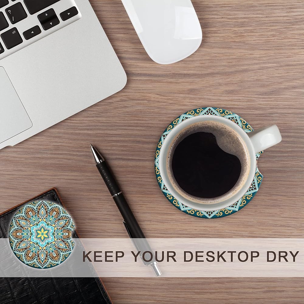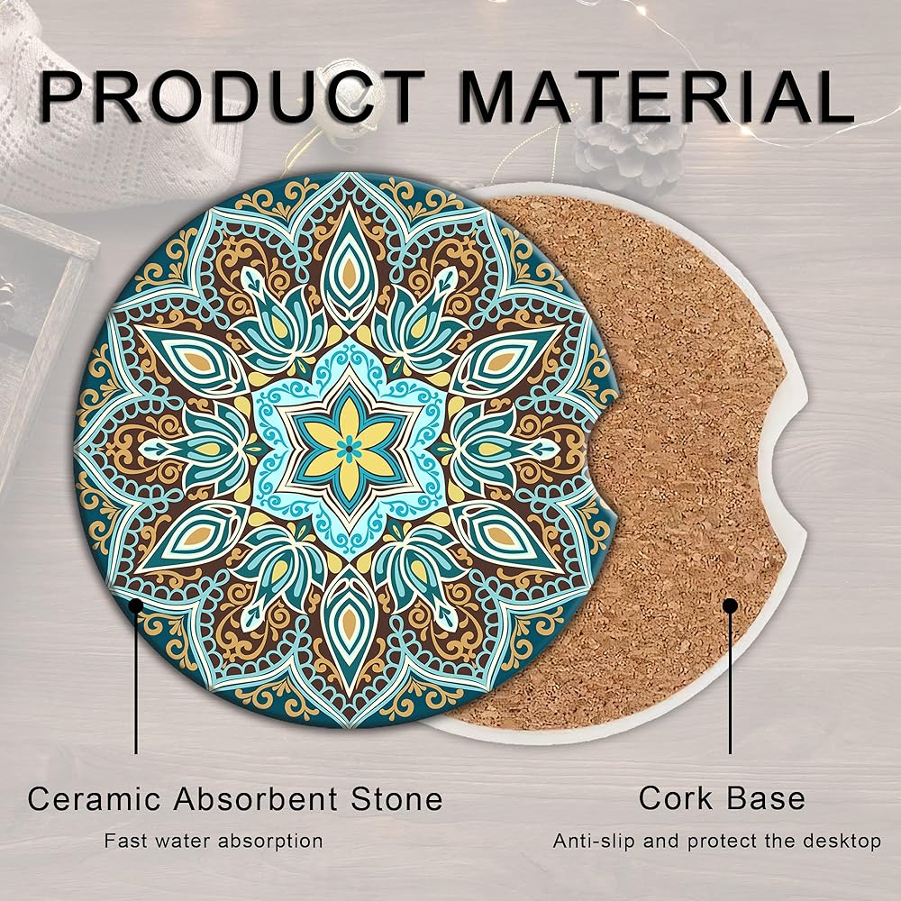 مواد عالية الجودة: قواعد الأكواب الخاصة بنا مصنوعة من مادة فلين سيراميك عالية الجودة تتميز بقدرة امتصاص فائقة، مما يضمن بقاء سيارتك نظيفة وجافة.
