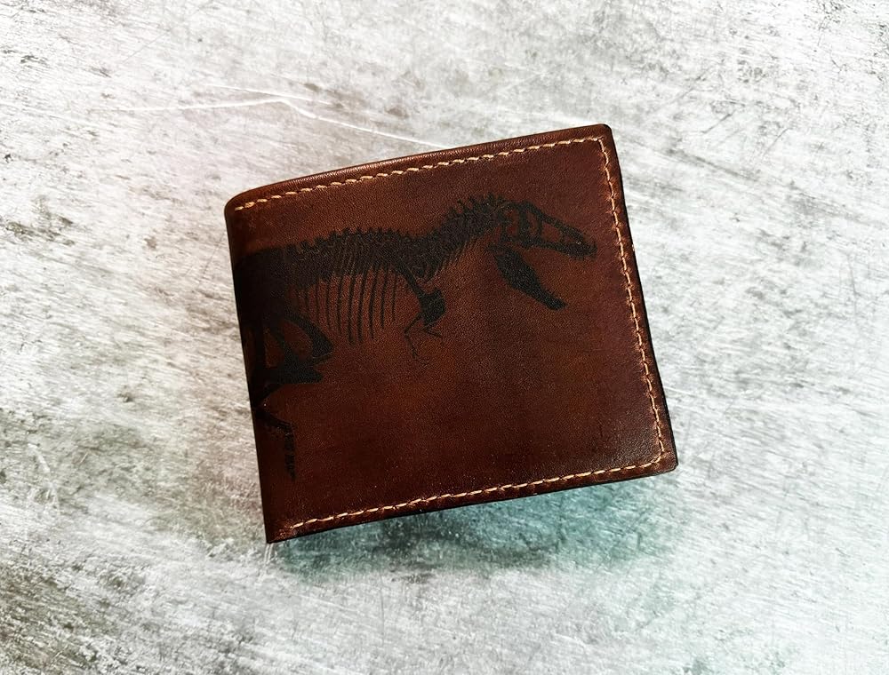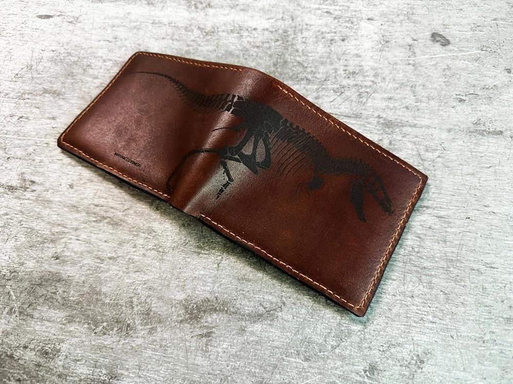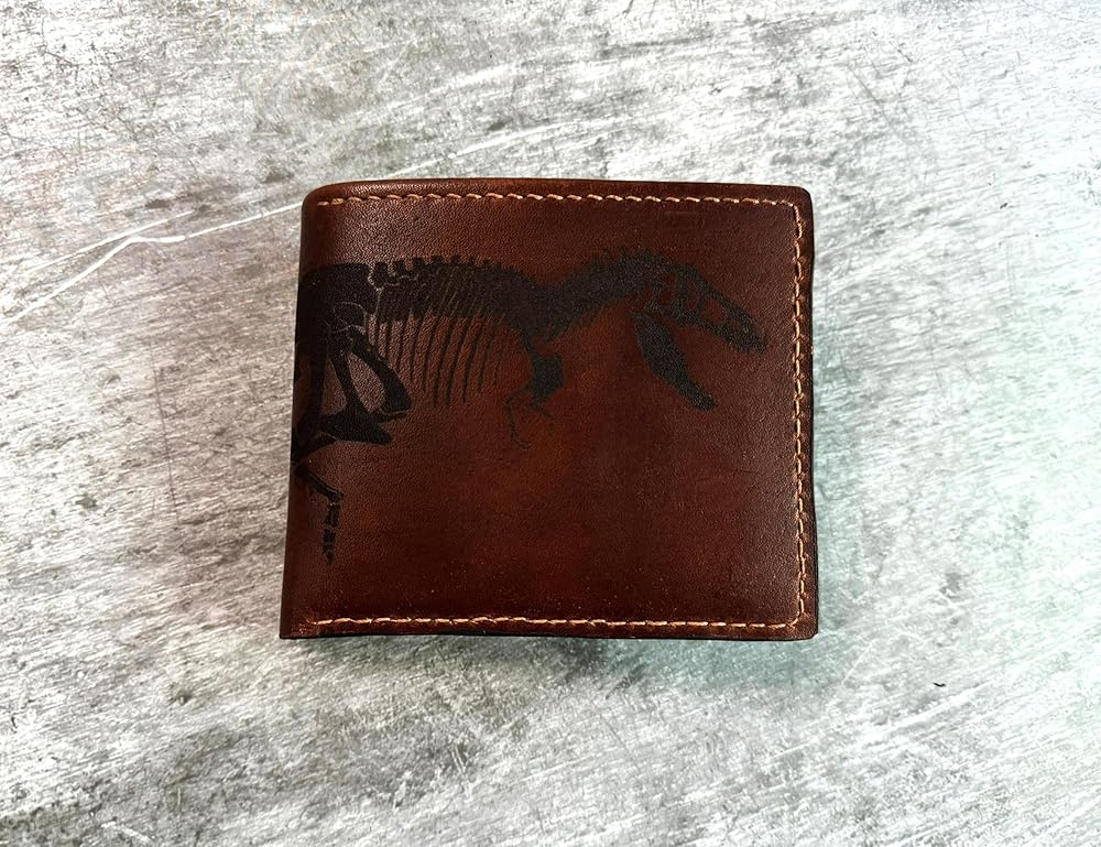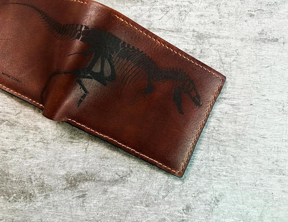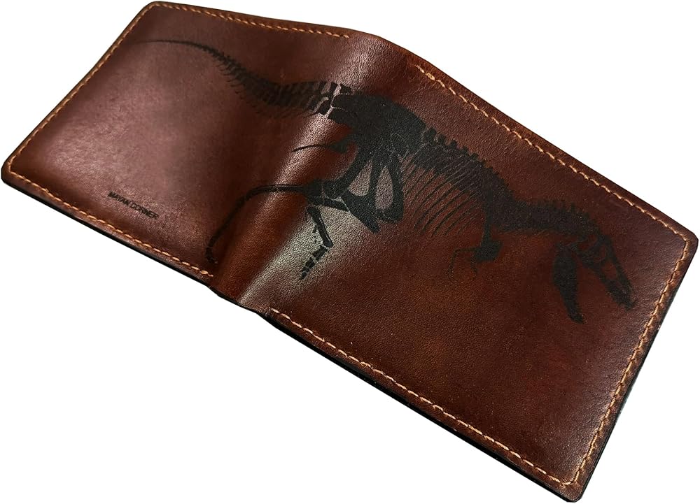 - T-rex genuine leather handmade men bifold wallet have 02 big folders for cash in horizontal, 02 medium folders for bill/driver license...04 card slots and 01 ID card folder