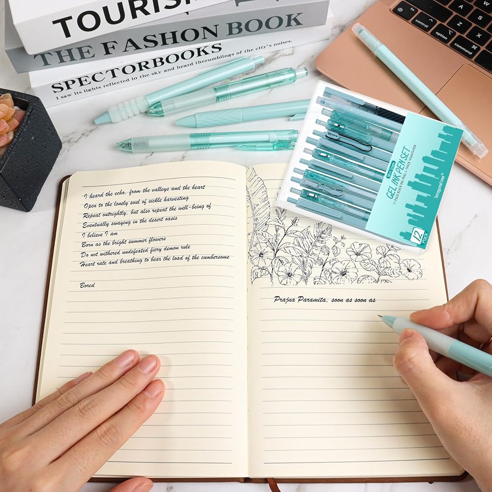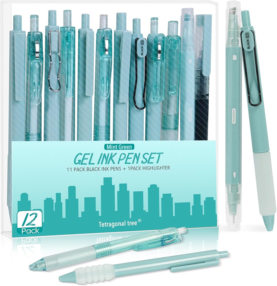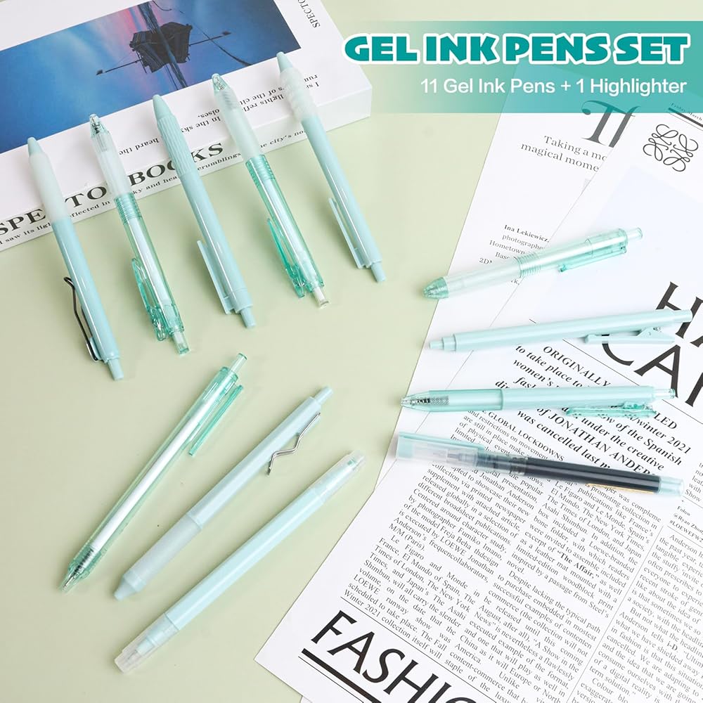 🔴المجموعة الشاملة: تحتوي هذه العبوة على 11 قلم جل أسود وقلم تمييز واحد بألوان الماكرون الباستيل الساحرة وأنماط متنوعة، مما يوفر خيارات متنوعة للإمساك وتجارب الكتابة.