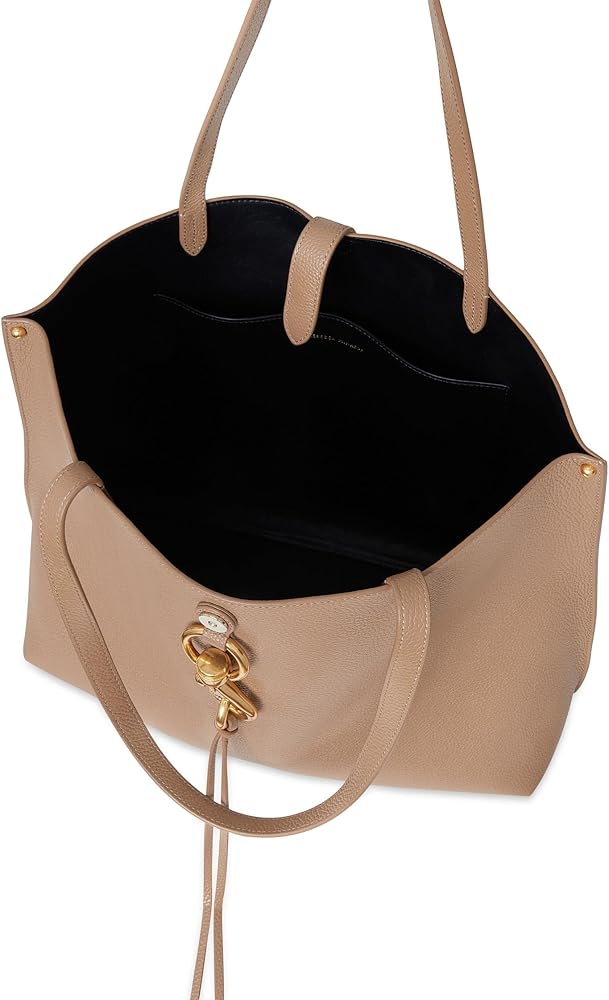 Roomy enough for even the busiest of days, Megan has a classic shopper tote silhouette that can fit your laptop, gym clothes, and daily necesscities. Made from soft pebbled leather in a black hue, it's topped off with mixed metal dog-clip hardware and features a discreet magnetic snap closure.