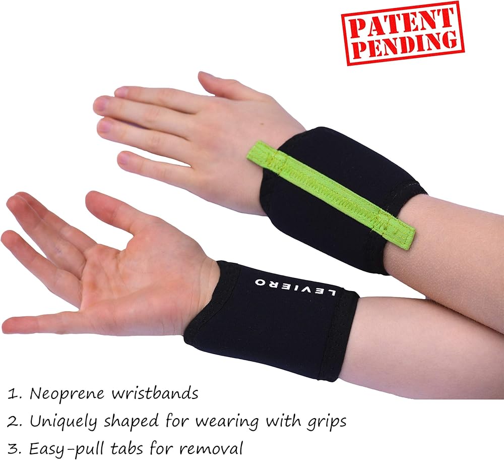 STURDY NON-SLIP WRISTBANDS FOR GYMNASTIC GRIPS - These wristbands are worn with grips for gymnastics girls, boys and anyone in between when training at the gym or home. Be different, choose smart and be comfortable! Wear LEVIERO gymnastics wristbands for grips to really work at your best! Choose these for gymnastics gifts for Christmas. Simply great gymnastic wristbands for protecting your wrists when worn with gymnastics bar grips.