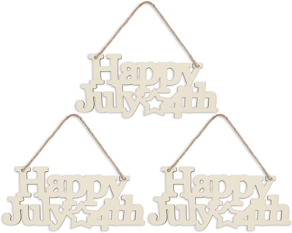 3 قطع Happy 4th of July Letter Wood Sign American Star الوطنية المعلقة لوحة خشبية DIY مشروع الحرف اليدوية مع الحبال ليوم الذكرى للمحاربين القدامى يوم الاستقلال الديكور، 7.87 × 3.54 بوصة