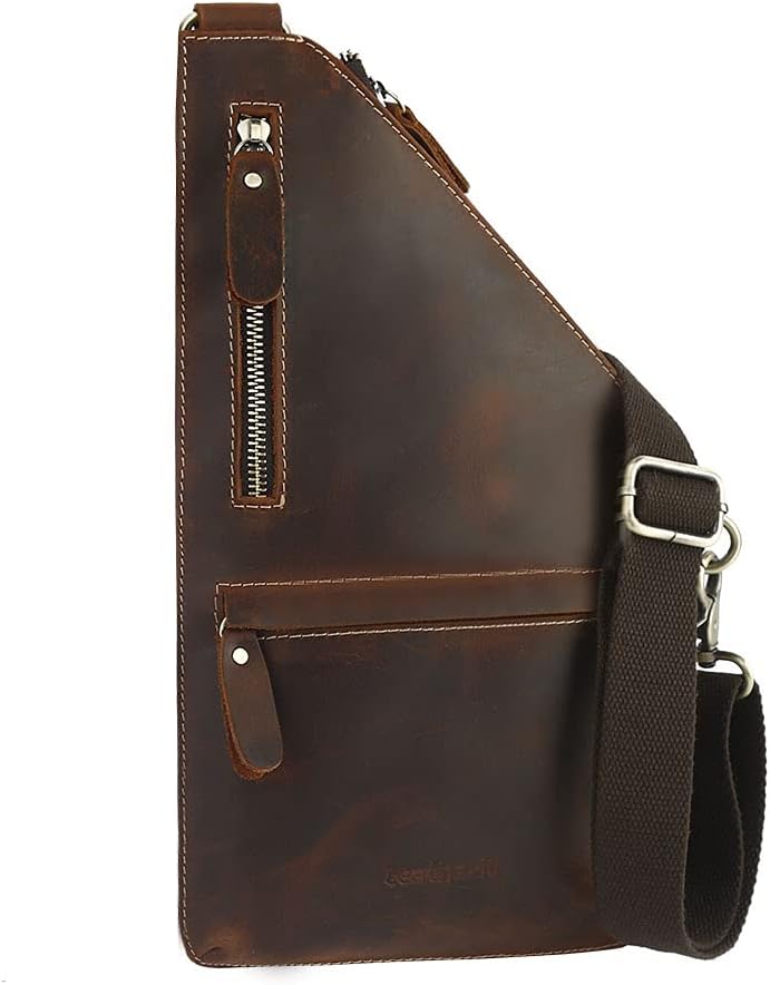Leather sling bag for men with delicate and clear textures, elegant appearance! We are always looking for the newest boldest styles that adds that little extra sparkle to help you stand out from the crowd yet classy.
