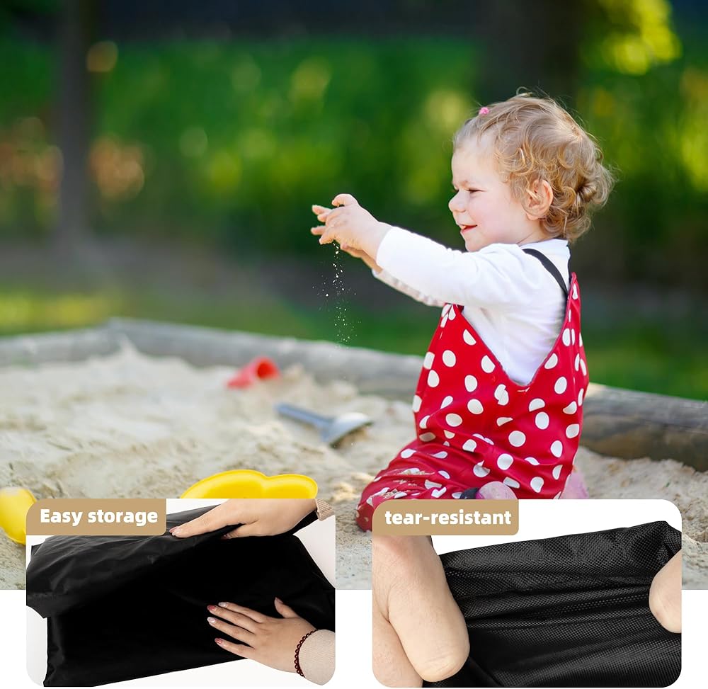 • Great Protection: Sandbox cover allows toys and sandboxes to be left outside on rainy days without tidying up. The waterproof cover can block dirt and splash water from outside, which can help you save time to cleaning. Sandbox covers can be widely used as sandpit covers, swimming pool covers, sandbox covers, garden pool covers, furniture dust covers.