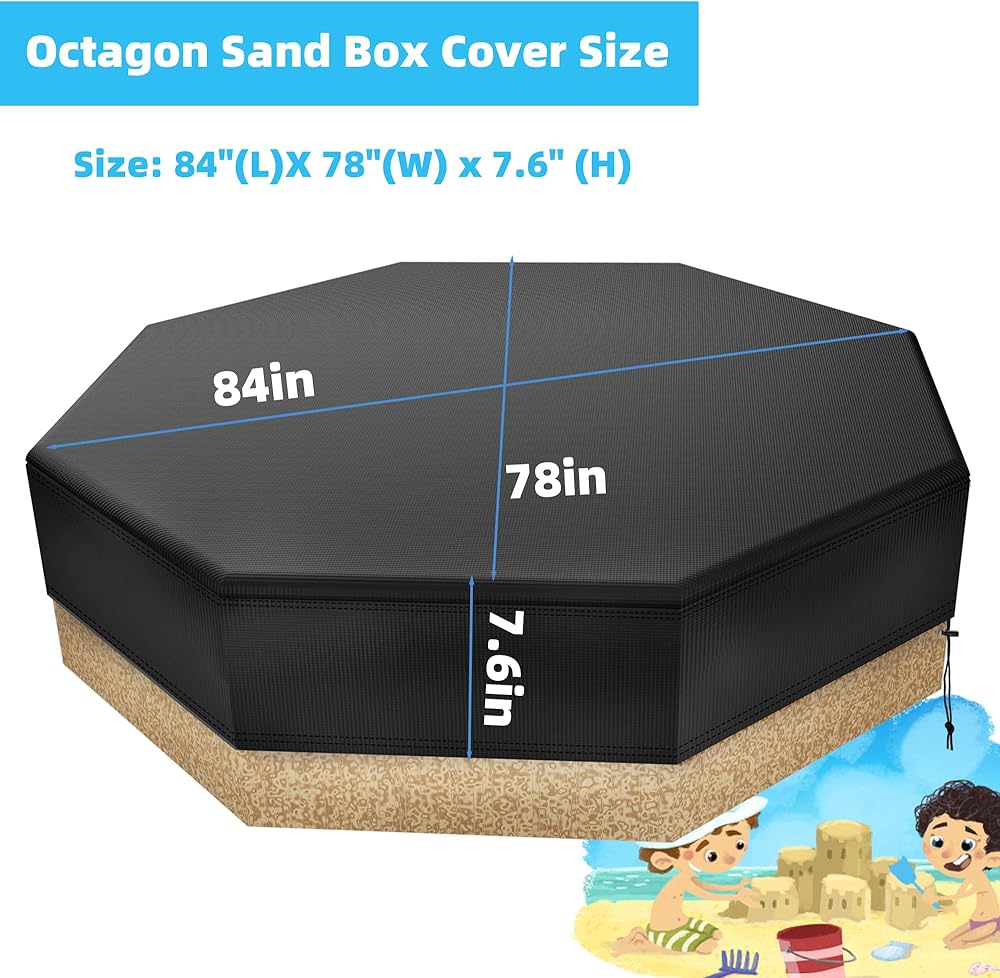 • EASY STORAGE: The octagonal sandbox cover measures 84 x 78 x 7.6 inch/ 213*198*19.5 cm for octagonal sandboxes and folds up for easy storage when not in use. Sandbox Canopy is suitable for most size of etc other outdoor furniture.