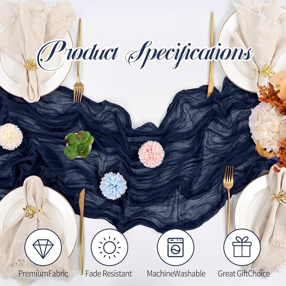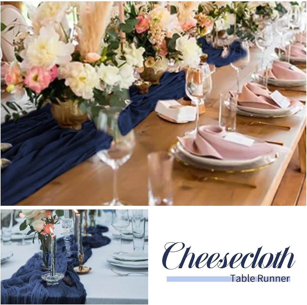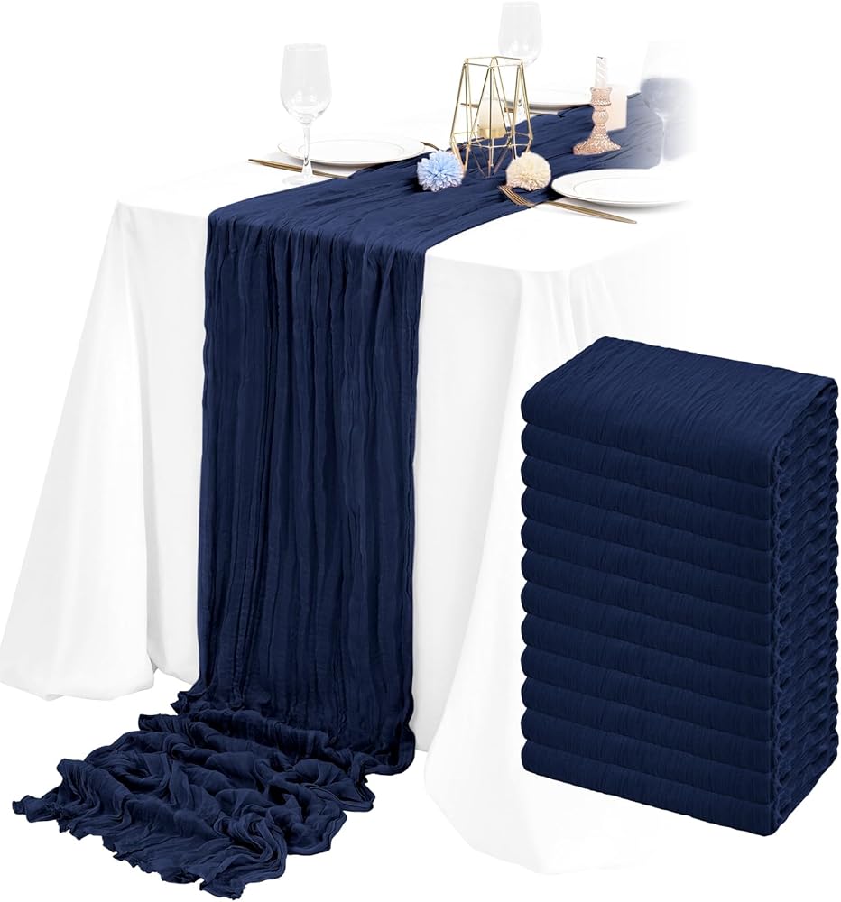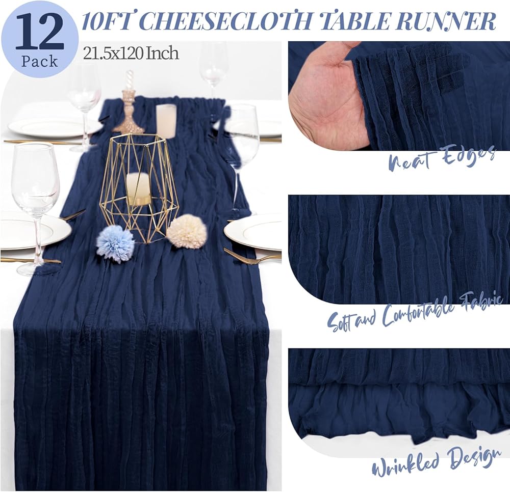 🌷مجموعة مفرش طاولة من قماش الجبن: تحتوي العبوة على 24 قطعة مفارش طاولة باللون الأزرق الداكن مع نسيج مجعد، 20 × 120 بوصة / 50 × 300 سم، كل منها بطول 10 أقدام بما يكفي لتغطية طاولات مستطيلة ومستديرة من 8 إلى 10 أشخاص، الكمية كافية لتلبية احتياجاتك اليومية والاستبدال، ستخلق طيات جميلة وتنسدل بشكل لطيف على طاولتك، مما يمنحك ذكريات رومانسية وأنيقة، وتجعل ضيوفك مثيرين للإعجاب.
