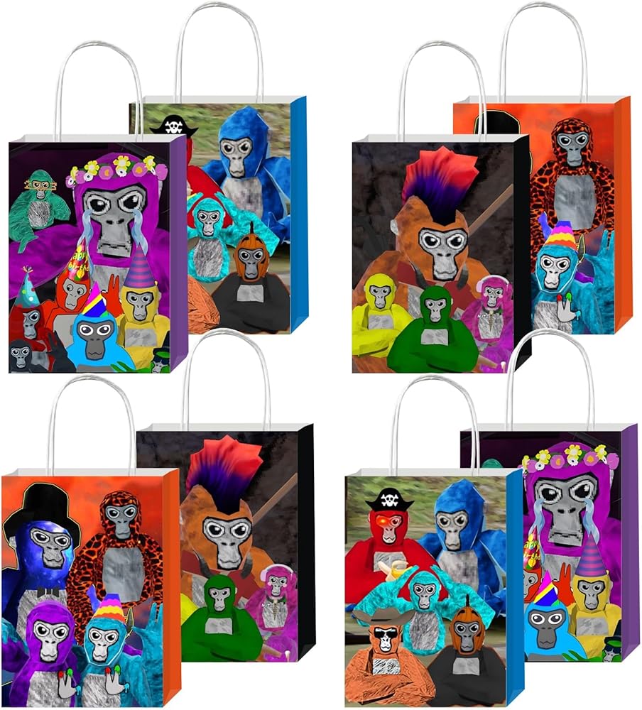 12pcs Gorilla Tag Party Favor Gift Bags with Handles, Gorilla Tag Birthday Party Supplies for Gorilla Tag Party Decorations