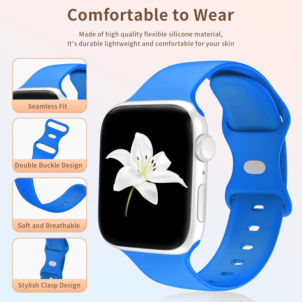 مادة سيليكون فاخرة: أحزمة IWatch للنساء والرجال الخاصة بنا مصنوعة من السيليكون عالي الجودة، صديقة للمعصم، مريحة، مقاومة للماء، خفيفة الوزن ومتينة، خيار رائع بأسعار معقولة لملحقات ساعة Apple الخاصة بك.