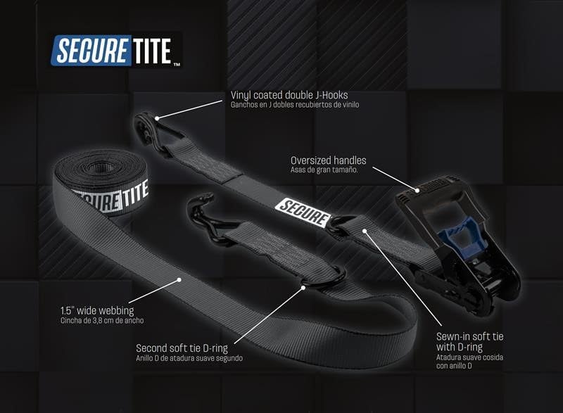 When the going gets tough, the tough reach for the Secure Tite Ratchet Tie-Down. The 1.25 inch wide BruteTek Extra Strength Webbing is more abrasion and cut resistant than other tie-downs. The over-sized open molded steel ratchet handles offer ease of use even when wearing gloves.