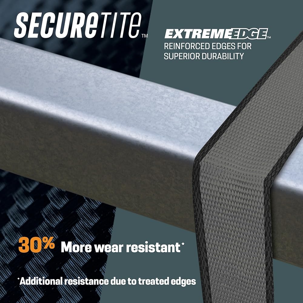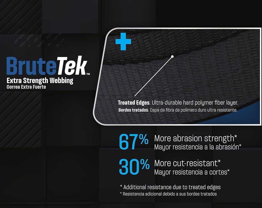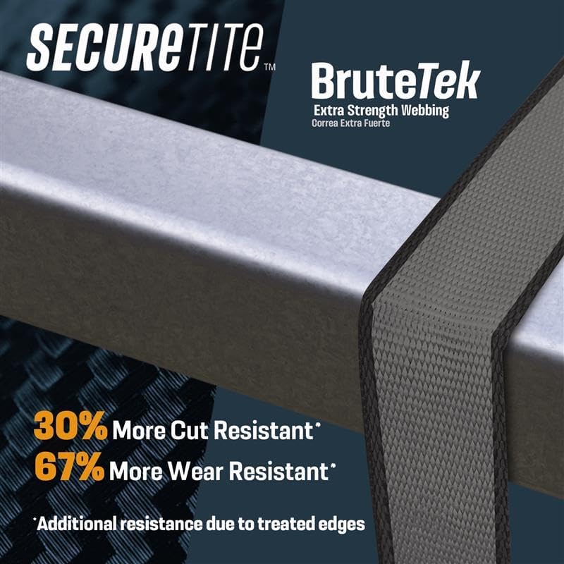 Quality and Durability: Secure Tite 16 ft. Ratchet Tie-Down features 1.25 in. BruteTek Extra Strength Webbing. This fabric has treated edges with an ultra-durable hard polymer fiber layer, adding 67% more abrasion strength