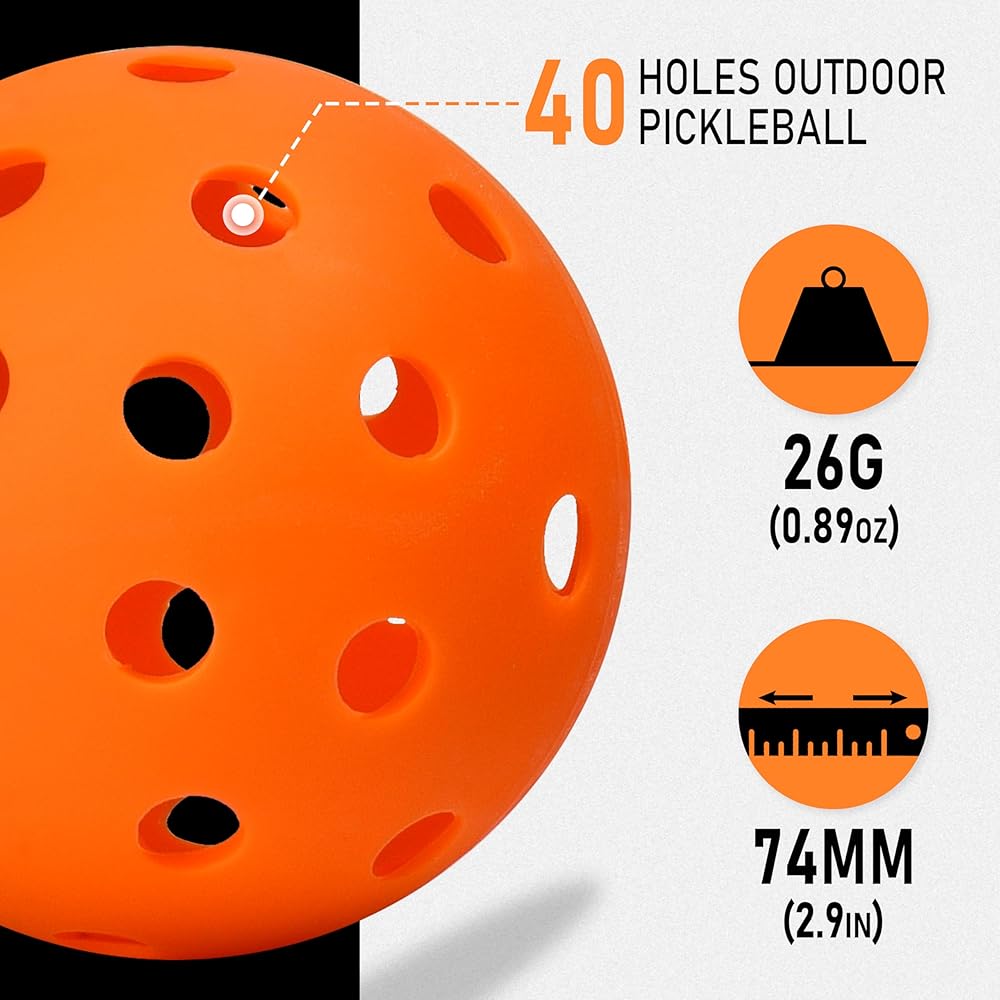 【متوافقة مع مواصفات USAPA】يبلغ قطر كرة المخلل 74 مم وتزن 0.89 أونصة، وتلبي مواصفات USAPA في جميع جوانب البناء والحجم والوزن والارتداد والصلابة والتصميم. سواء كنت مبتدئًا في كرة المخلل أو لاعبًا متمرسًا، فلن تتمكن من الاستمتاع فحسب، بل يمكنك أيضًا تحسين مهاراتك في كرة المخلل.