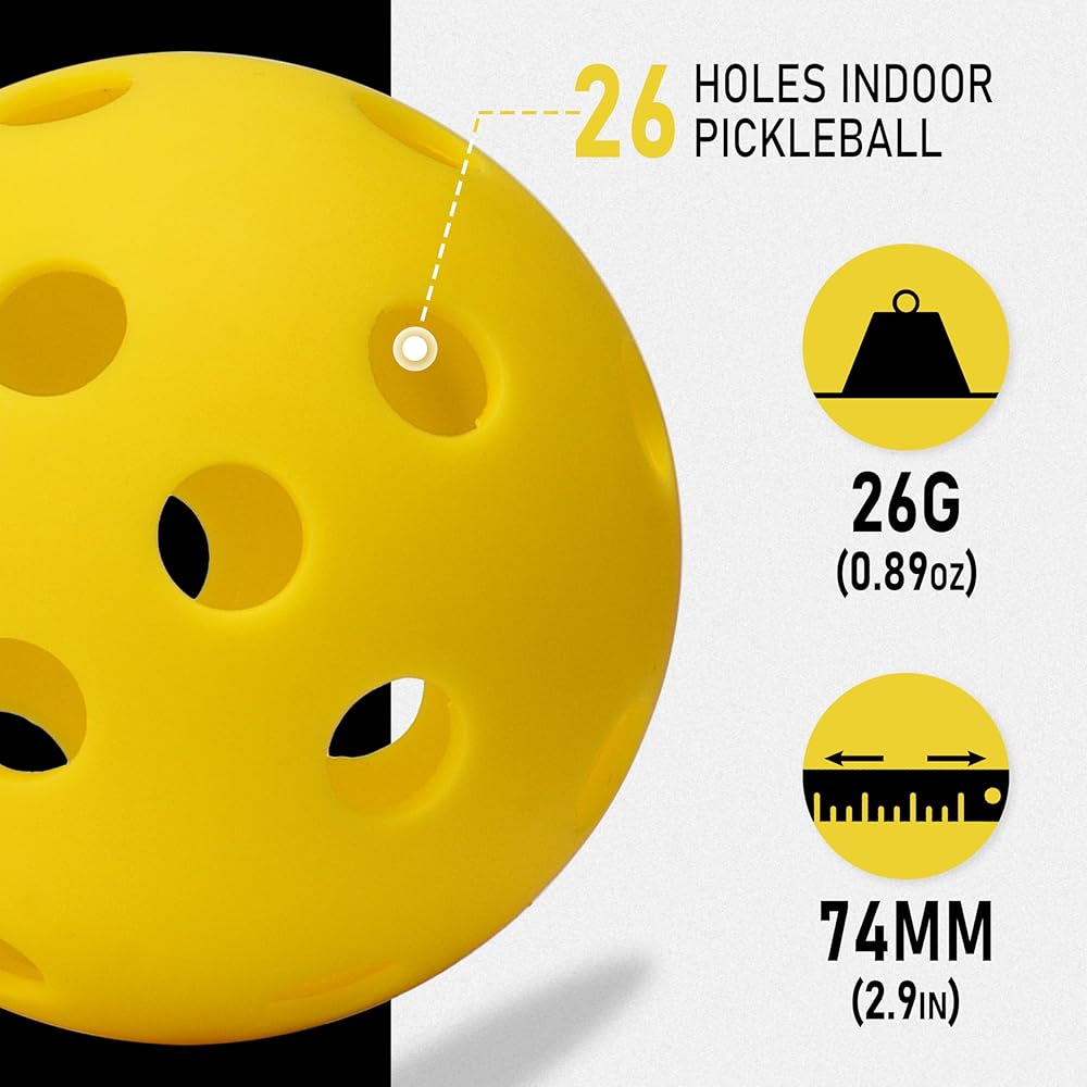 【أداء عالي التحمل】كرة مخلل مصنوعة من مادة البولي بروبيلين، مع ارتداد جيد، ومقاومة قوية للصدمات، ومقاومة جيدة للطقس، مما يسمح لها بضرب الكرة بقوة وبسرعة. توفر كرات المخلل الملحومة بمبدأ الذوبان الكهروحراري كرة المخلل بمتانة أكبر ومضادة للانقسام، وعمر خدمة طويل، وتقلل من مشكلة تغييرات الكرة المتكررة أثناء التمرين.