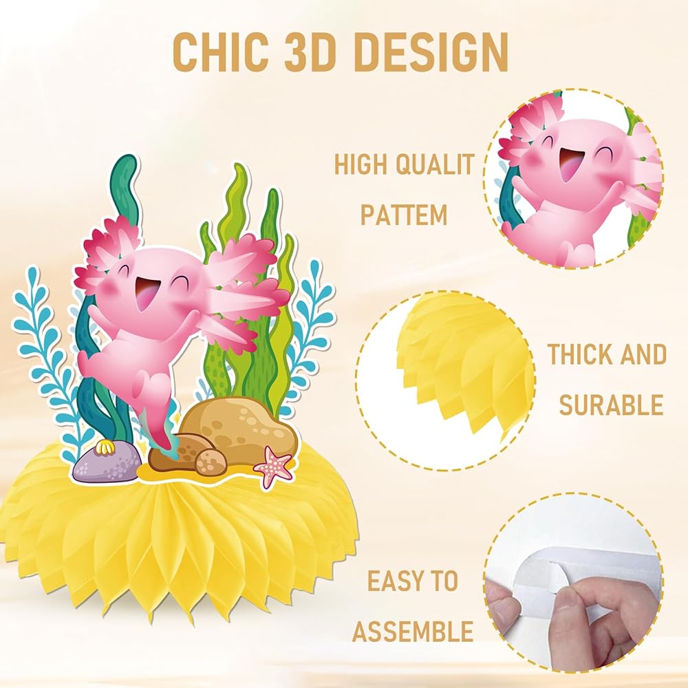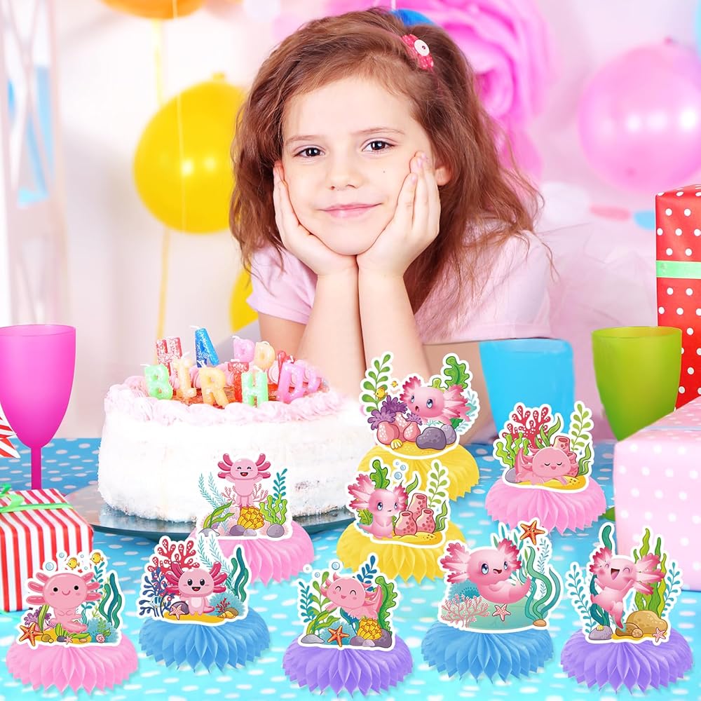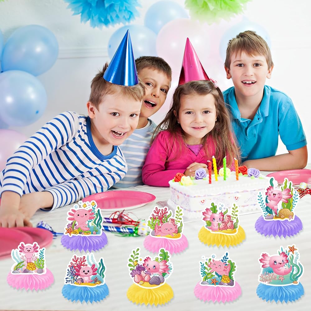 9 قطع من القطع المركزية على شكل قرص العسل - ديكورات حفلات أعياد الميلاد من إكسولوتل حيوانات الزواحف ديكور طاولة إكسولوتل للأطفال والبنات والأولاد ومستلزمات حفلات أعياد الميلاد