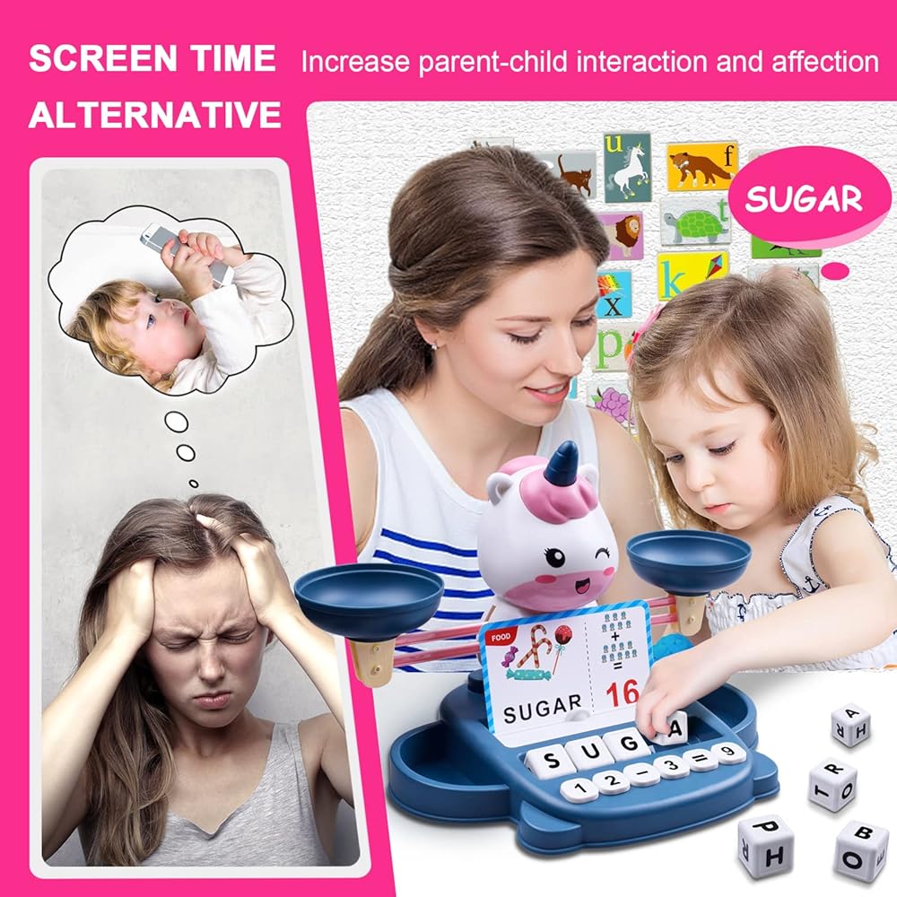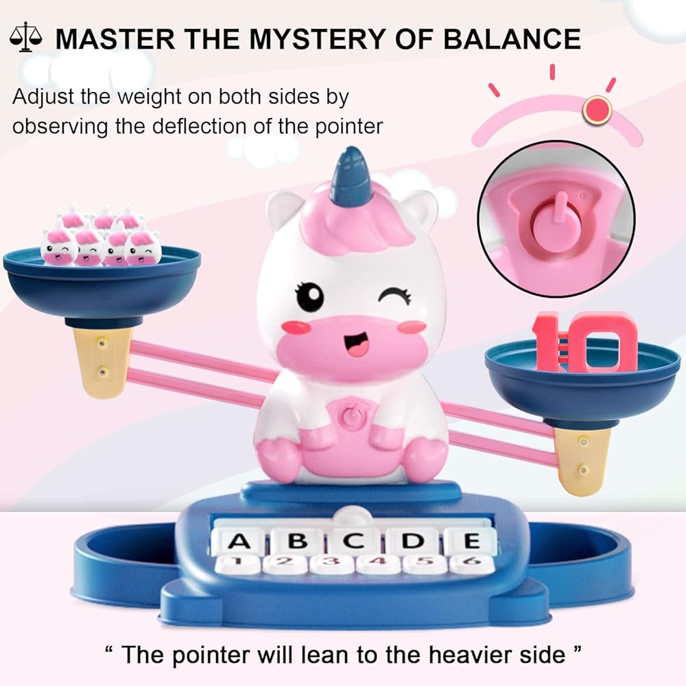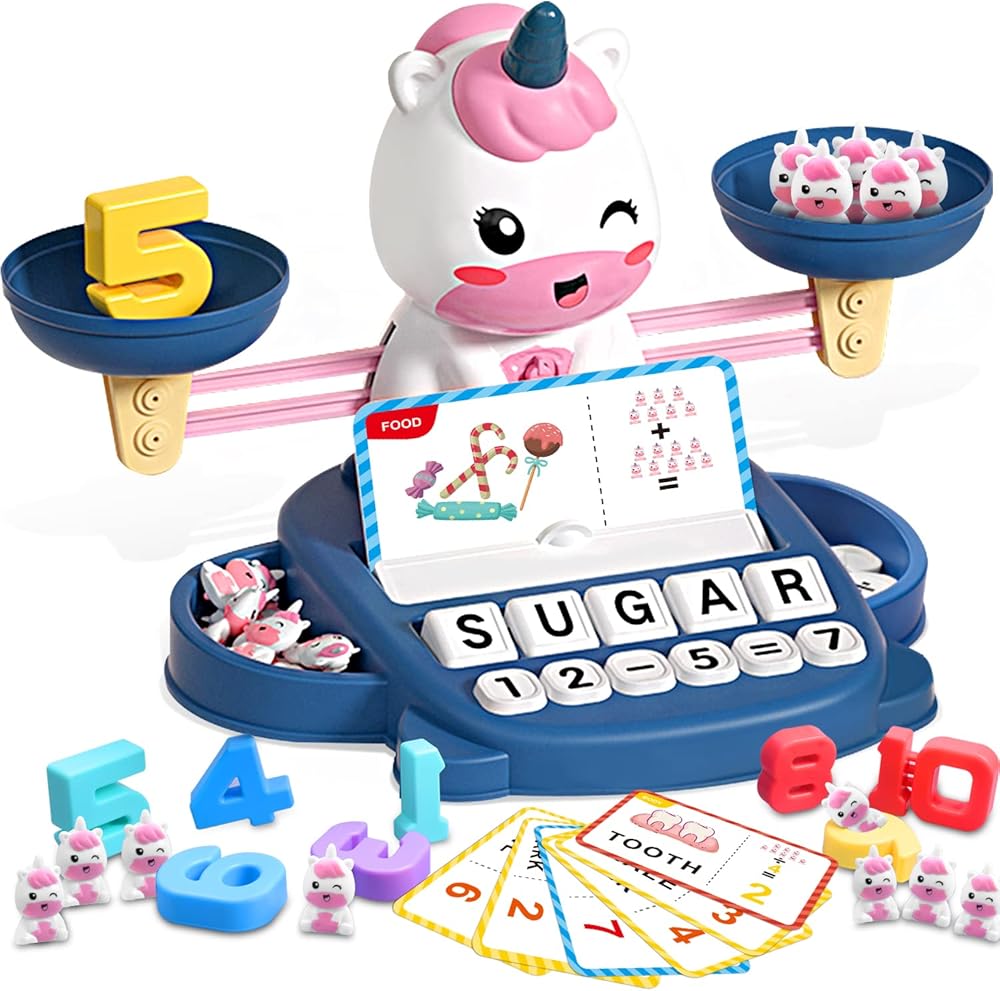 ألعاب تعليمية وتعليمية لوحيد القرن: تتضمن العبوة ميزانًا واحدًا وصينيتين و10 أوزان رقمية ملونة و20 وزنًا صغيرًا لوحيد القرن. ألعاب تعليمية وتعليمية للأطفال من عمر 3 4 5 6 7 سنوات.