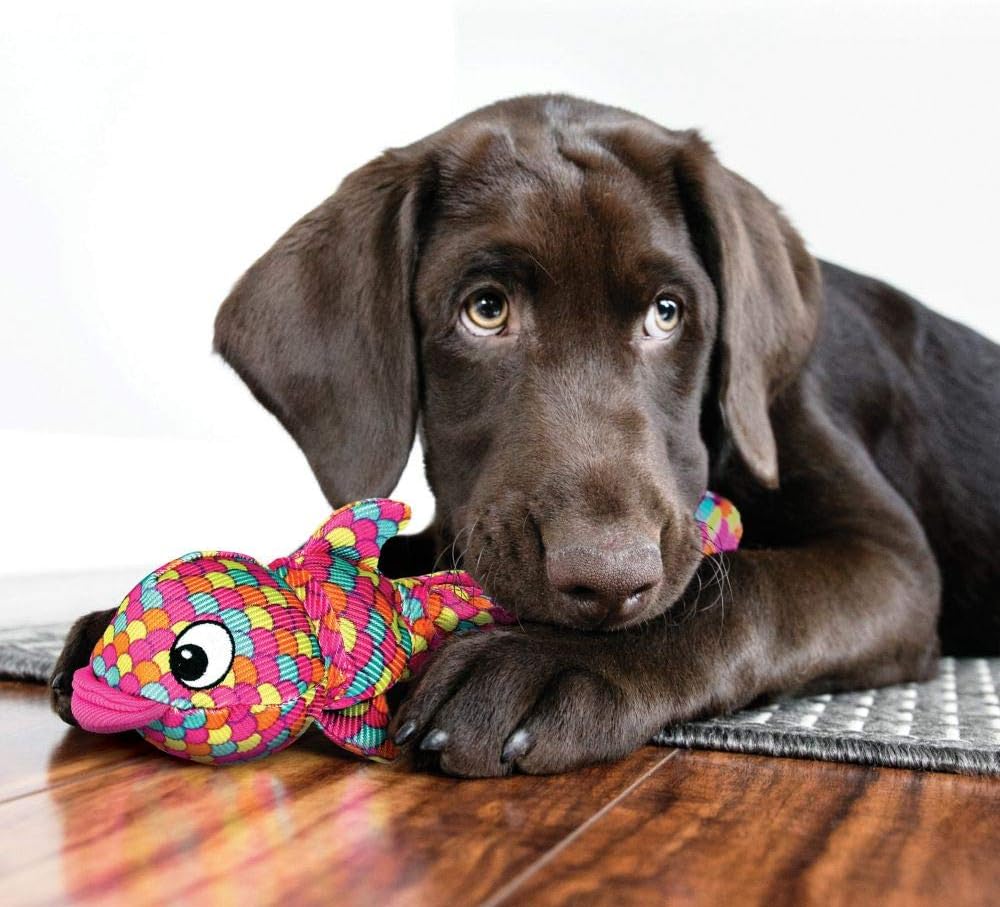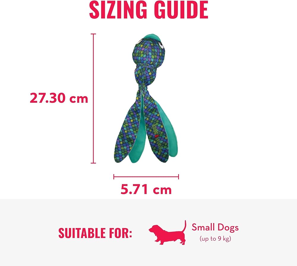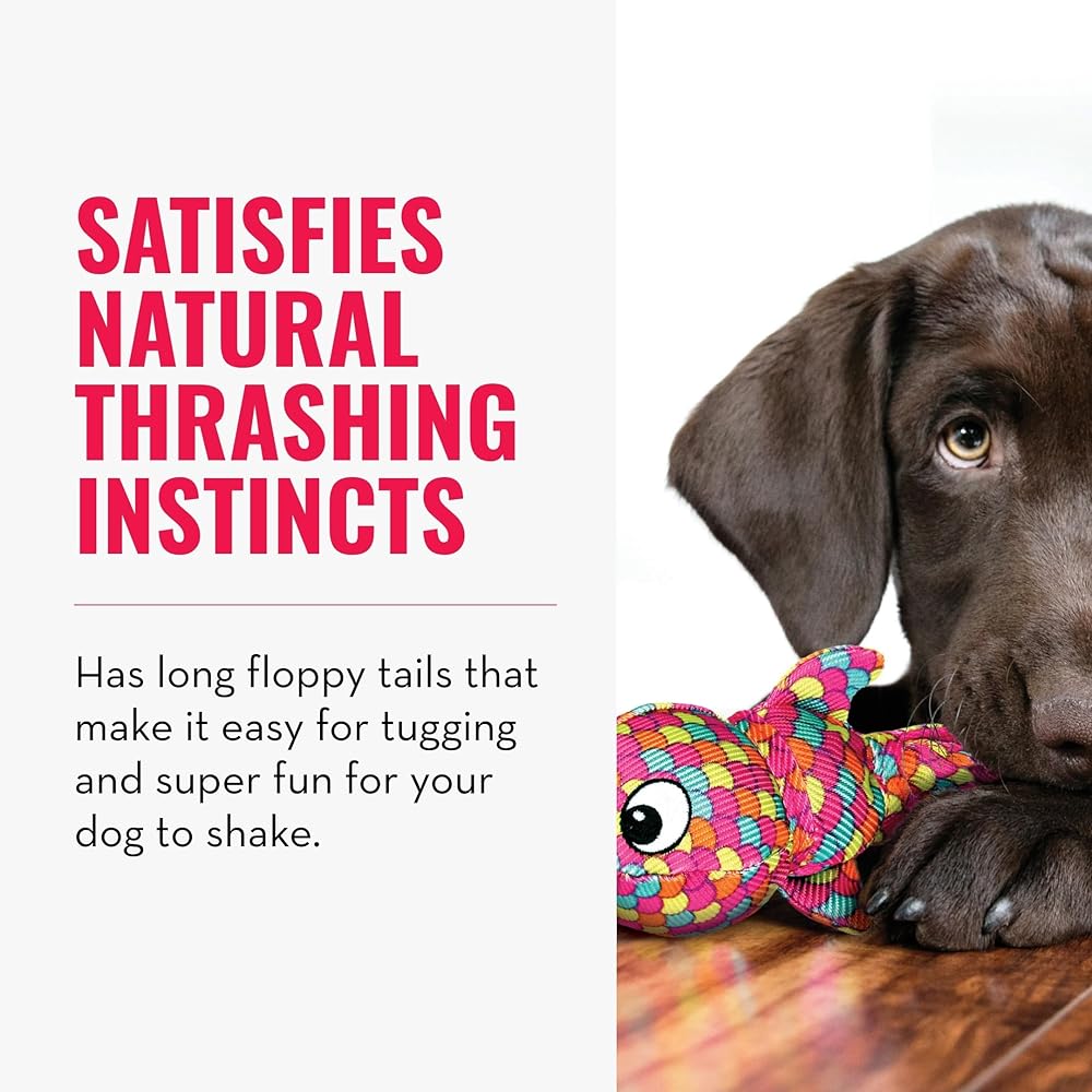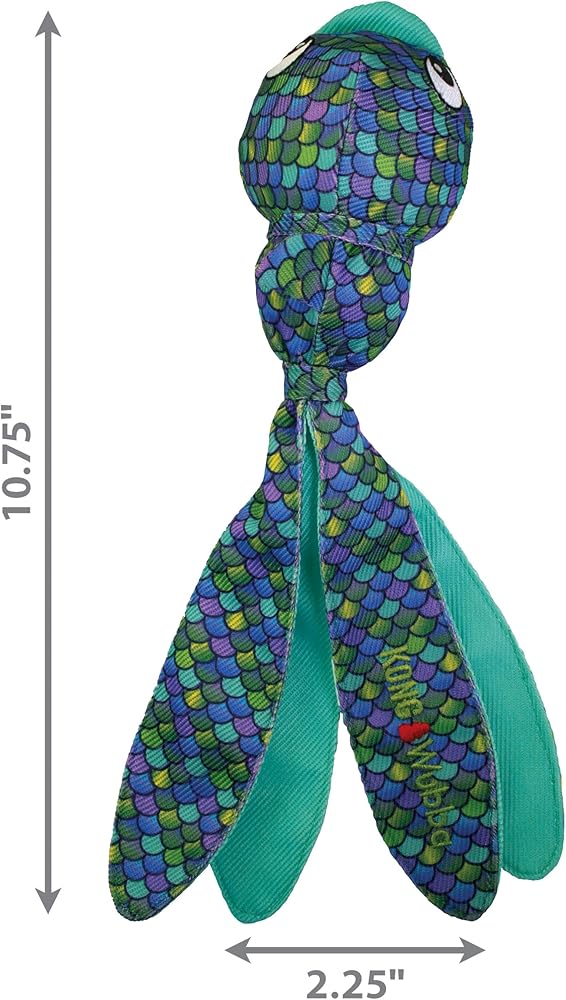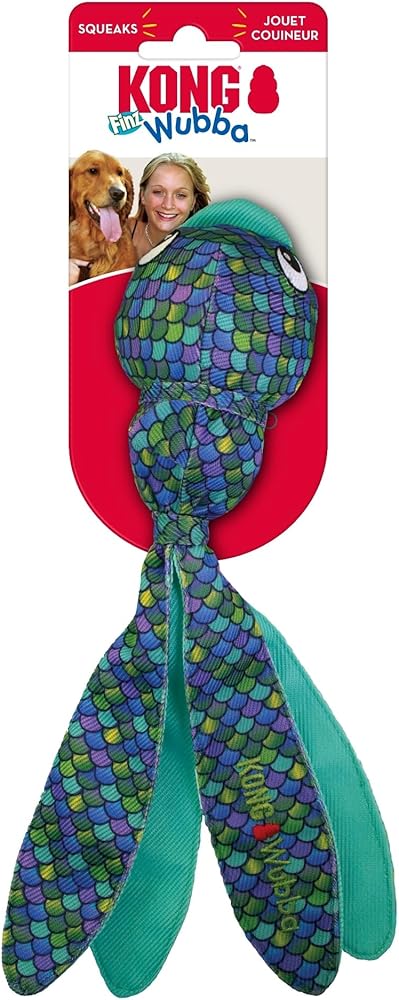 The KONG wubba finz has long Floppy tails that make it easy for tugging and super fun for your dog to Shake, satisfying natural thrashing instincts. Two balls inside help KONG wubba finz bounce and squeak, extending games of catch and release for tons of healthy, active play. This flying fish is made to soar through the air and launch your dog into a fetching frenzy.