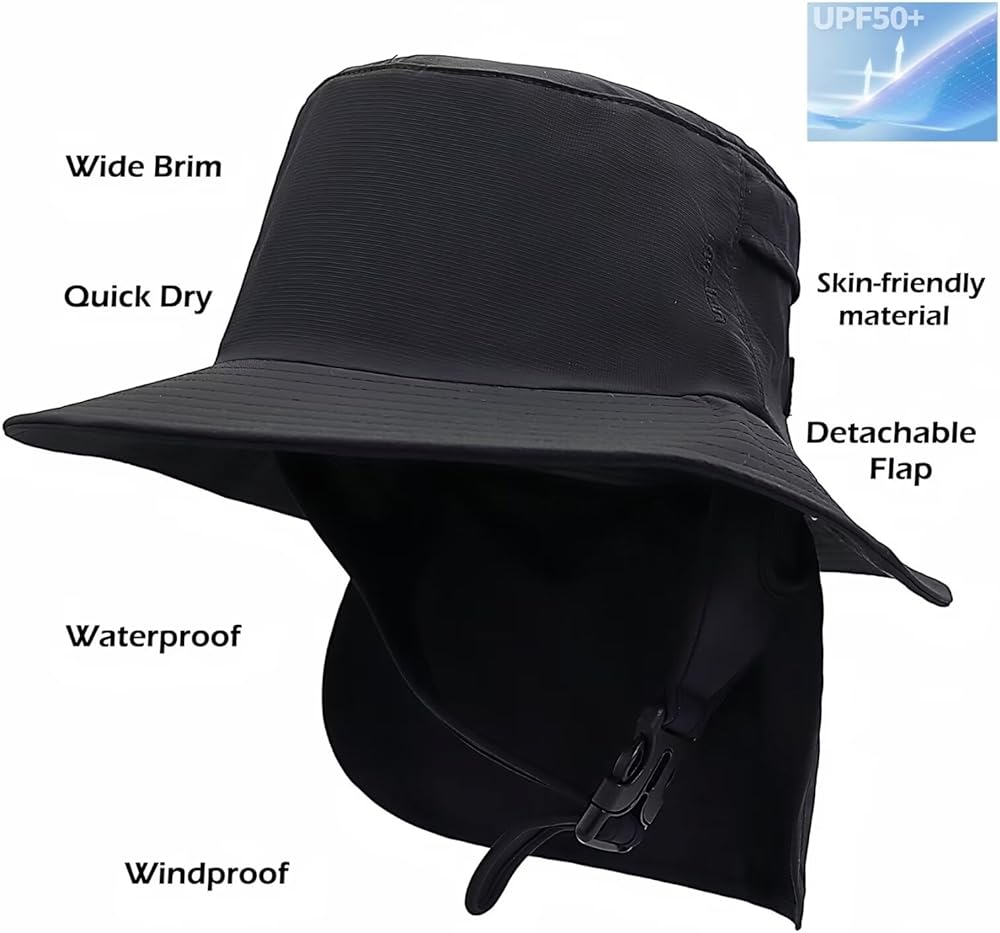 قبعة LLmoway لركوب الأمواج بعامل حماية من الأشعة فوق البنفسجية 50+ قبعة شمسية للشاطئ مقاومة للماء مع حزام للذقن