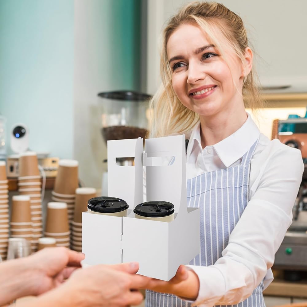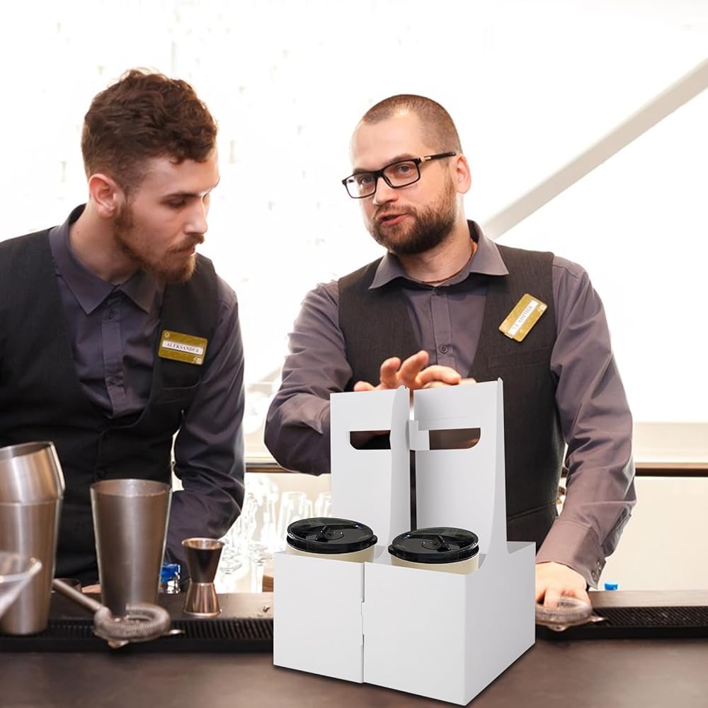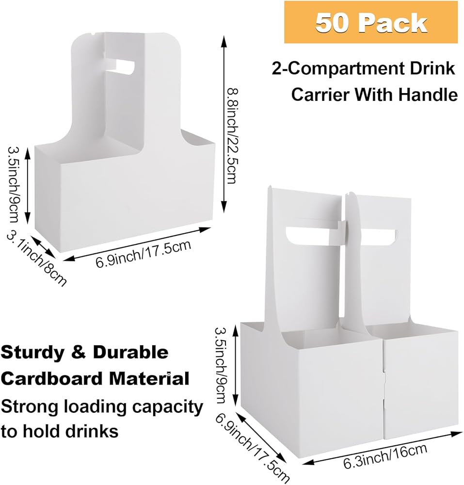 【تشمل العبوة】تحتوي كل عبوة على 50 عبوة من حاملات المشروبات بمقبض، مثالية للاستخدام الشامل في المقهى والمطاعم. حجم كل حامل أكواب هو 17.5 × 8 × 22.5 سم / 7 × 3 × 8.8 بوصة (الطول × العرض × الارتفاع)، ويمكنه استيعاب 12-20 أونصة من المشروبات الساخنة والباردة.