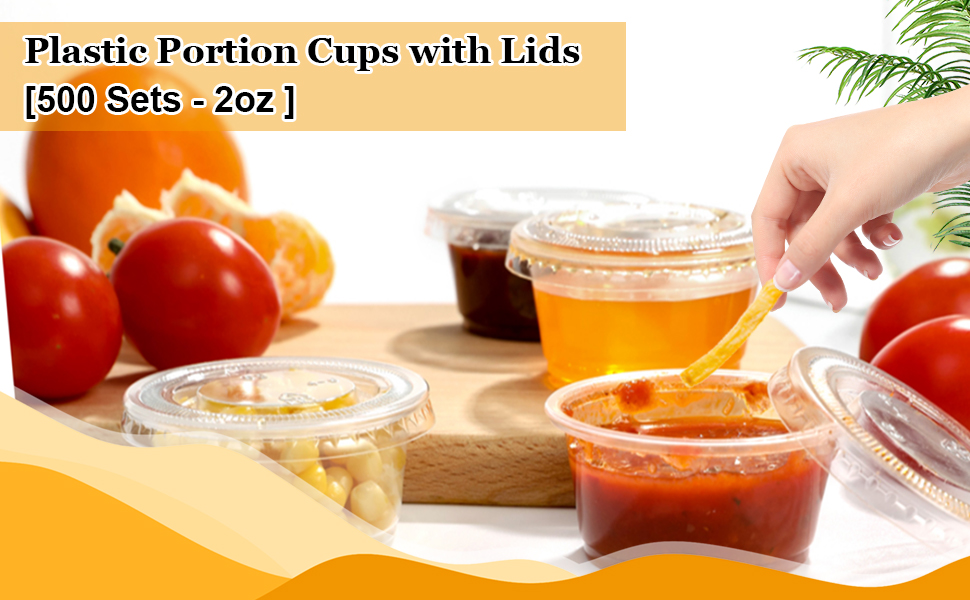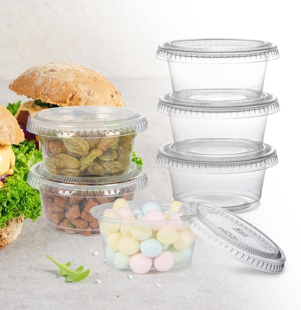 • تطبيقات واسعة - يمكن استخدام الحاويات البلاستيكية ذات الأغطية بسعة 2 أونصة في المطابخ، والحفلات، والمطاعم، والبوفيهات، وما إلى ذلك، وهي مثالية لتخزين التوابل والصلصات وضمادات السلطة والزبادي والهلام والسوفليه والصلابة وعينات الطعام والحبوب والتحكم في الأجزاء، إلخ.
