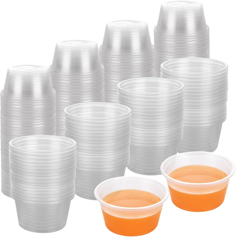 • المواصفات - تحتوي العبوة على 500 مجموعة من أكواب الجيلي بسعة 2 أونصة مع أغطية، سعة أكواب الجيلي: 2 أونصة، القطر العلوي: 2.5 بوصة، القطر السفلي: 1.6 بوصة، الارتفاع: 1.3 بوصة.