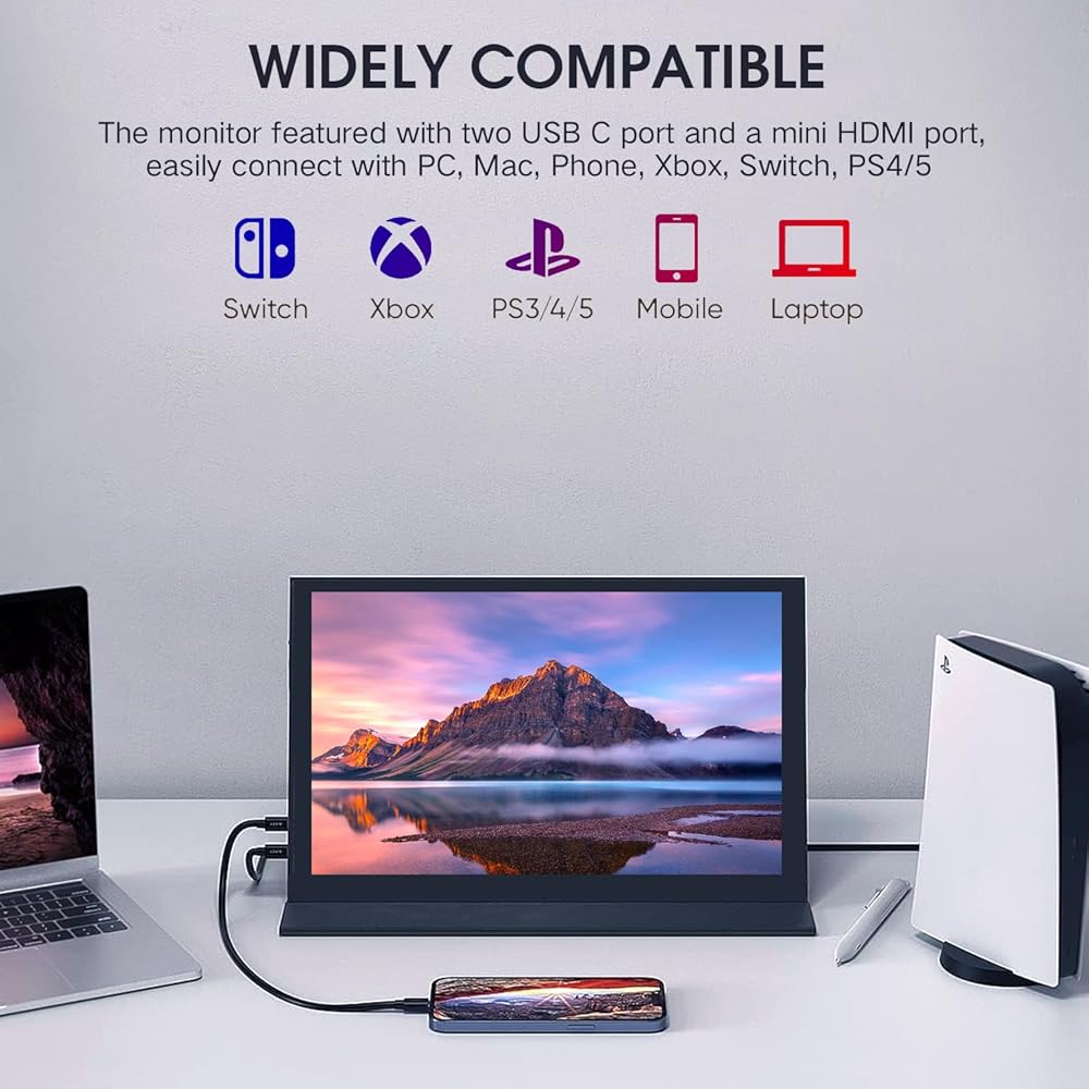 [Plug and Play] There is no need for an app and drivers, the POTTMACEE monitor provides 2 Full Feature Type-C ports. Only One USB Type-C Cable is required to connect to the power supply & display signal transmission. (Phones need full-featured USB ports).