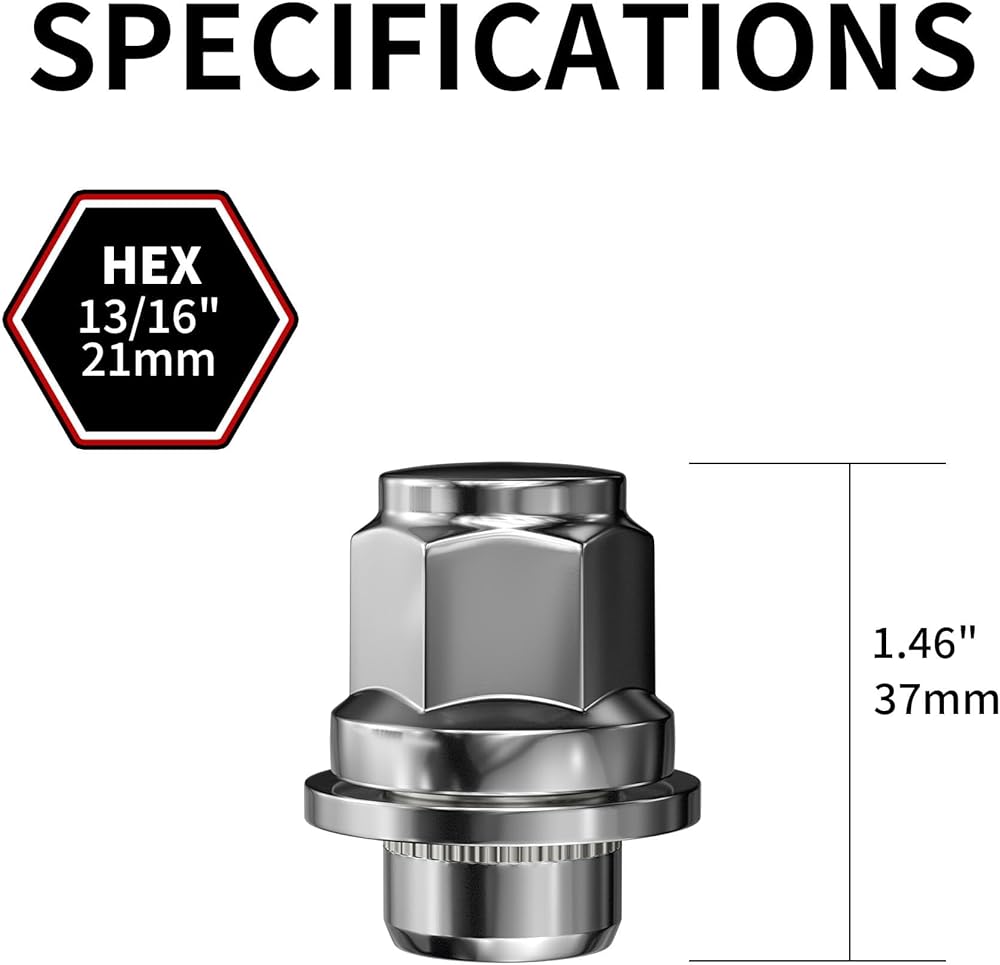 • Specifications: Thread Size: M12x1.5 - Hex Size: 13/16 Inch(21mm) - Height: 1.46 Inch - Mag Seat - Set of 24