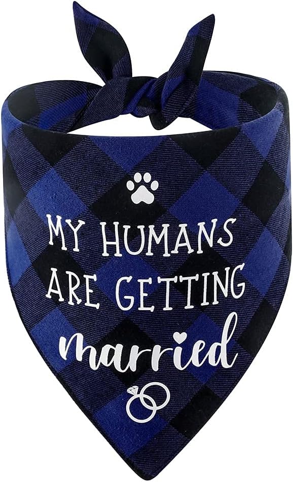 Essential Wedding Accessory: This package includes two beautiful dog bandanas. One says, "My Humans are Getting Married", the other says “She said yes”. Celebrate your wedding day and include your faithful friend in this celebratory occasion.