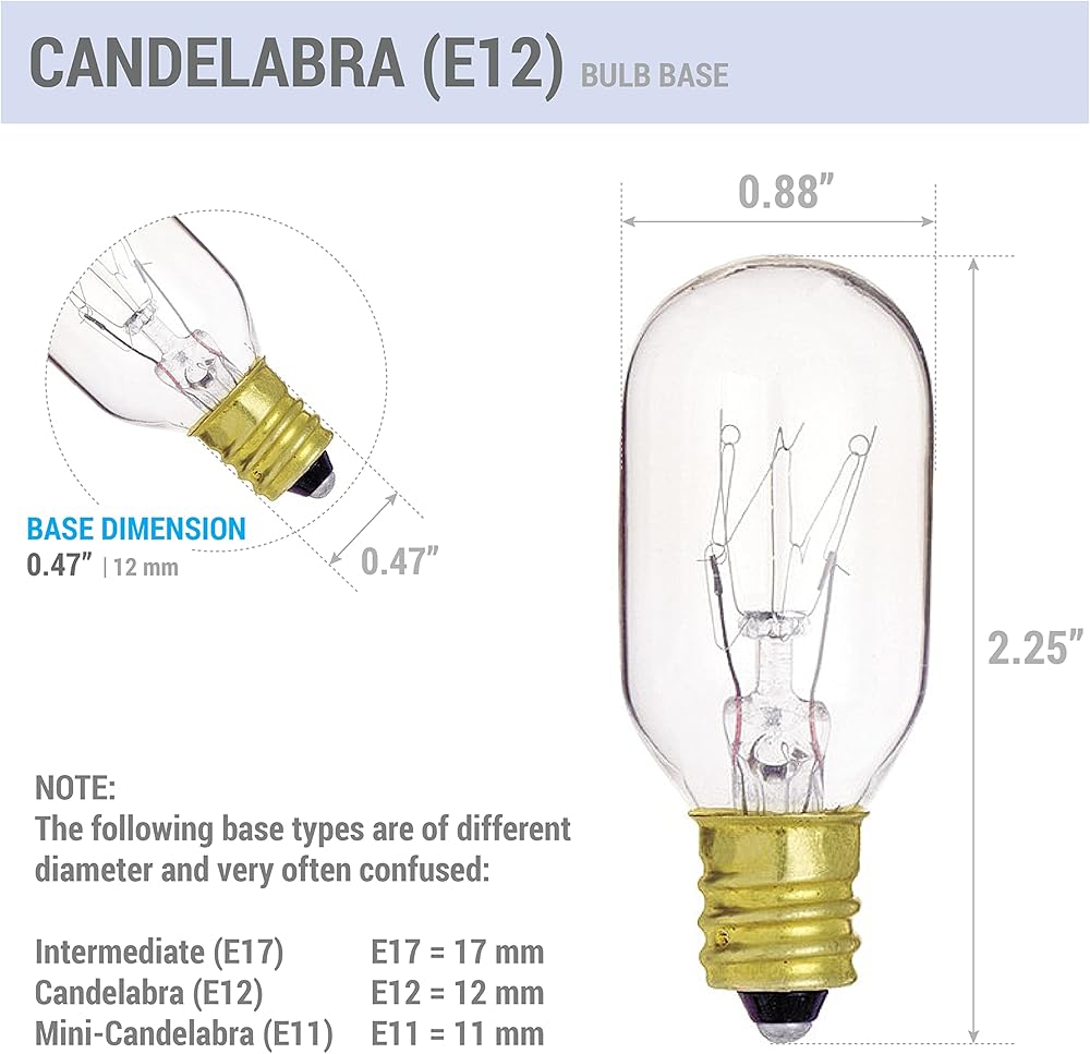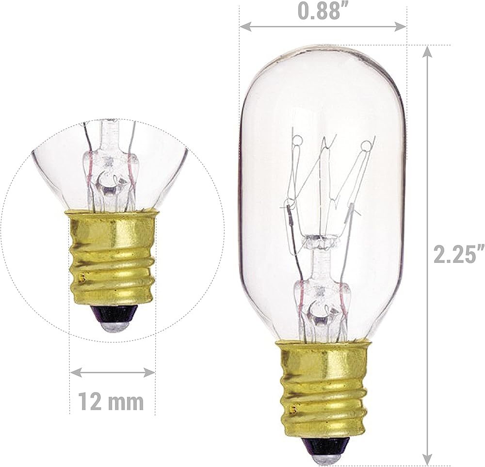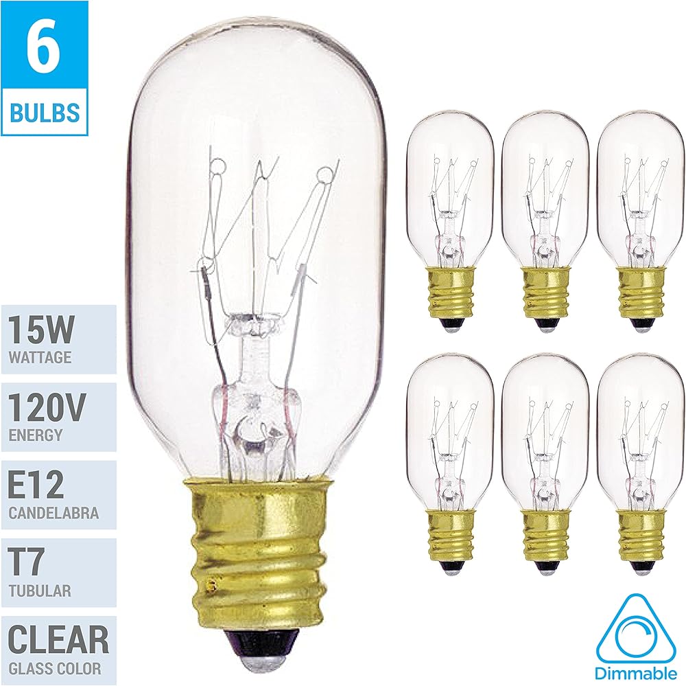 This KOR (Pack of 6) 15-Watt T7 appliance light bulb is ideal for use in microwaves, ovens, sewing machines, salt lamps and other small household appliances. It has a candelabra base and its rugged construction make it able to withstand shock, vibration and high temperatures. These lights are great for all your specialized fixtures that need low wattage and a E12 candelabra base. It is 15 watts give out around 100 Lumens – The length is 2-1/4” long and the width is 0.88” in diameter. The average rated life span is 2500 hours and it will work on any 110V to 130V fixture.