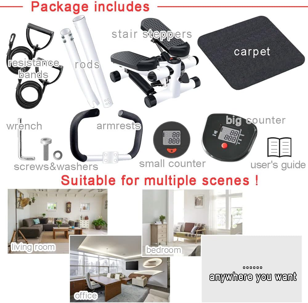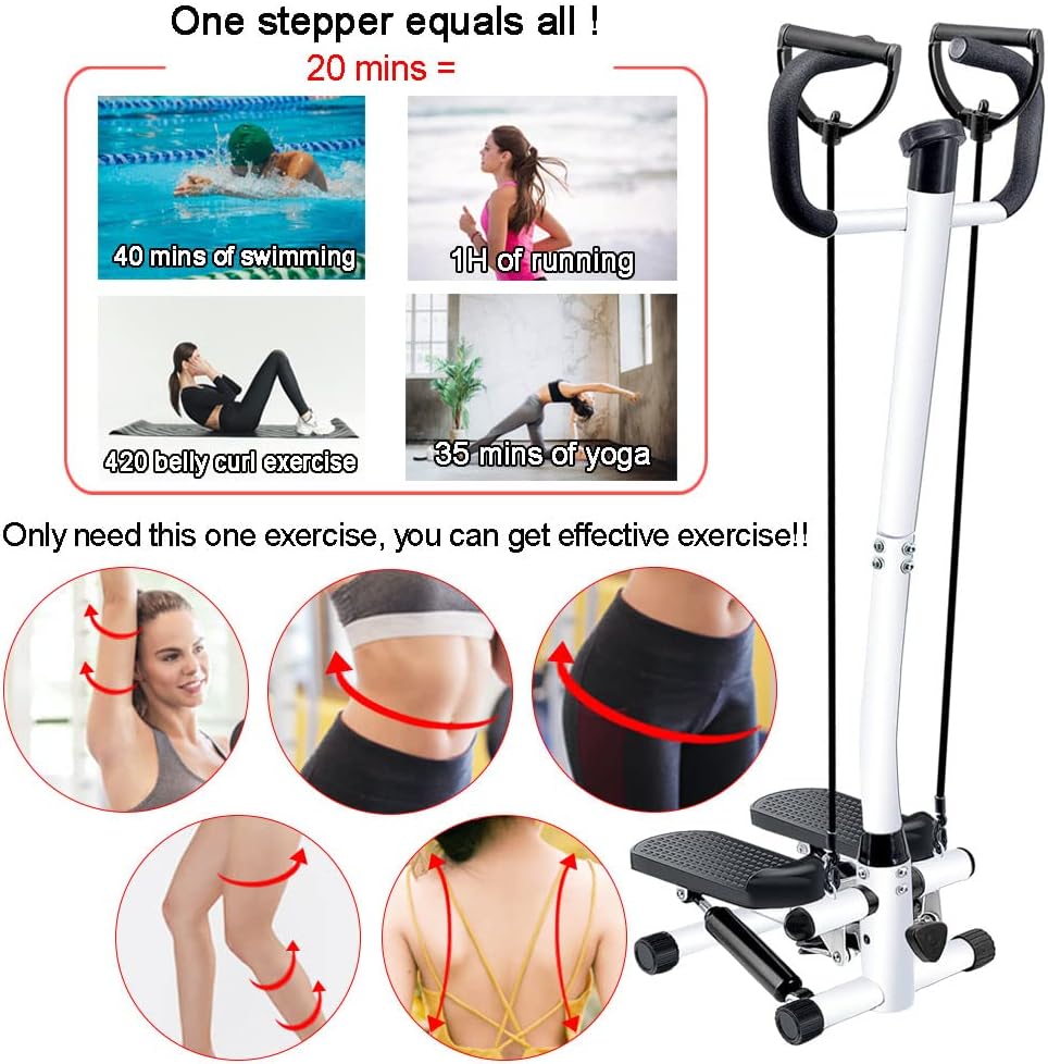 WITH HANDLEBARS & TENSION STRAPS: You can choose the tension bands or handles, according to your fitness needs. The U-shaped handles provide different grip points to meet more people of different heights, and keep your balance when you use the stair stepper.