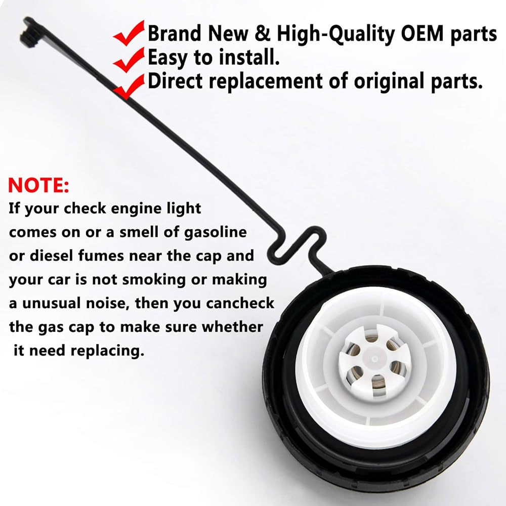 • The gas cap also called Fuel Tank Sealing Inner Cover, Gas Cap Cover, It provides a tight seal to keep your vehicle's fuel tank closed, fuel economy and reduce vapor emissions.the old, loose gas cap, cracked or otherwise faulty gas cap may causes your check engine light CEL turns on. If your check engine light comes on or a smell of gasoline or diesel fumes near the cap and your car is not smoking or making a unusual noise, then you can check the gas cap to make sure whether it need replacing.