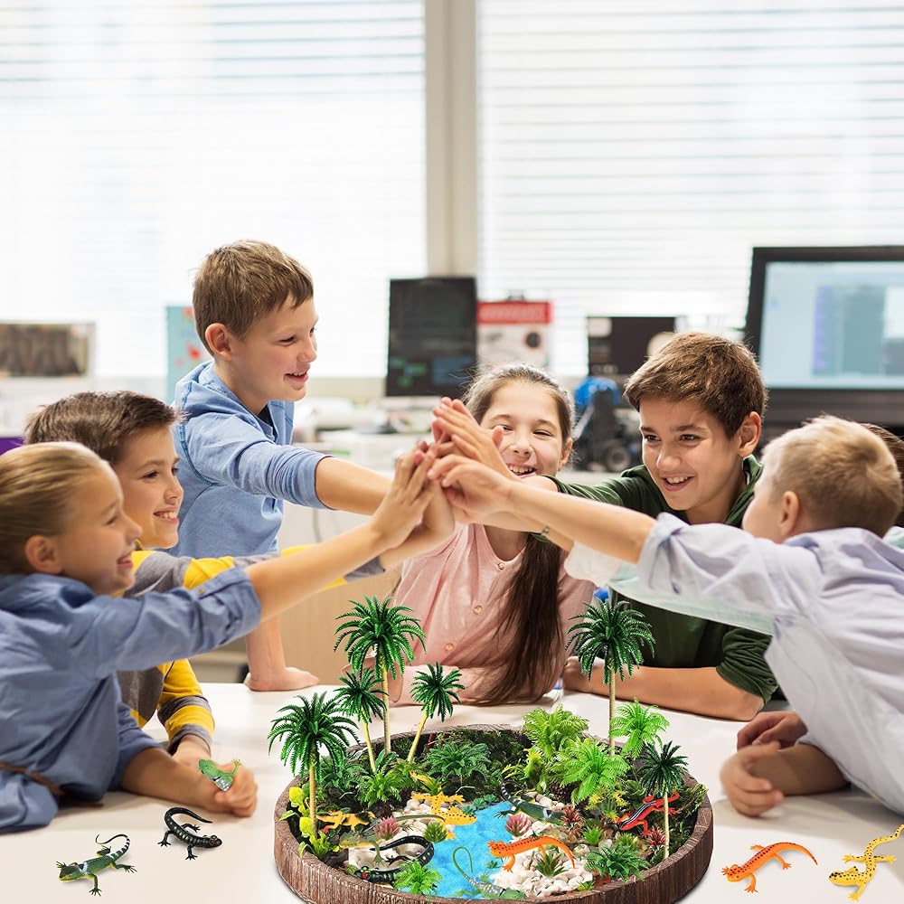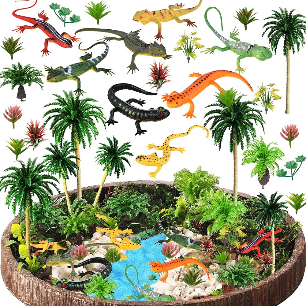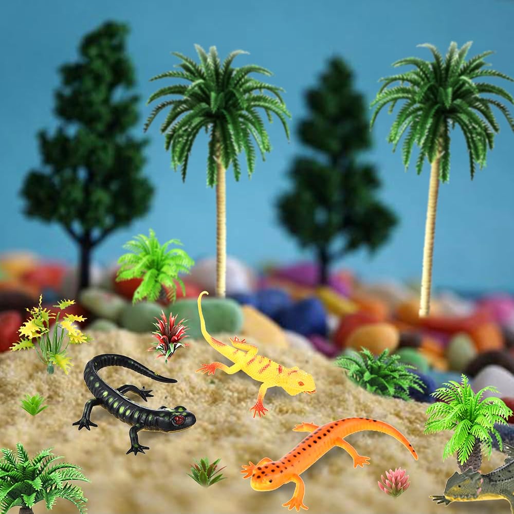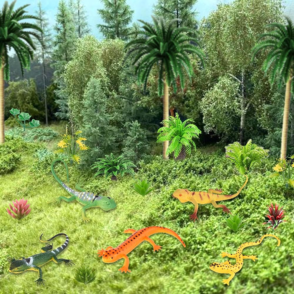 【Material】These model trees and lizards are made of plastic material, well workmanship and flexible for using.