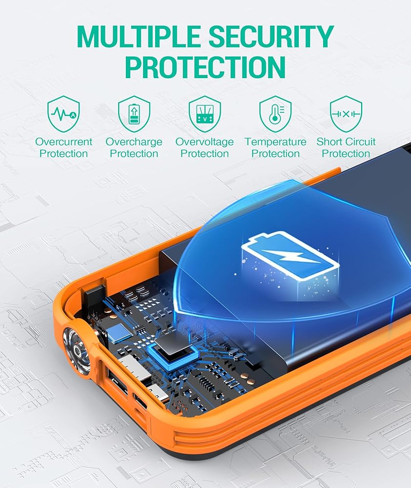 【شاحن شمسي بسعة كبيرة】: بطارية ذات سعة كبيرة 20000 مللي أمبير في الساعة، حزمة بطارية ليثيوم بوليمر أكثر أمانًا، لوحة شمسية فعالة للتحويل، مما يخفف من مخاوفك بشأن انقطاع الطاقة. مجهزة بشريحة IC للحماية الذكية، مما يضمن سلامة الشحن.