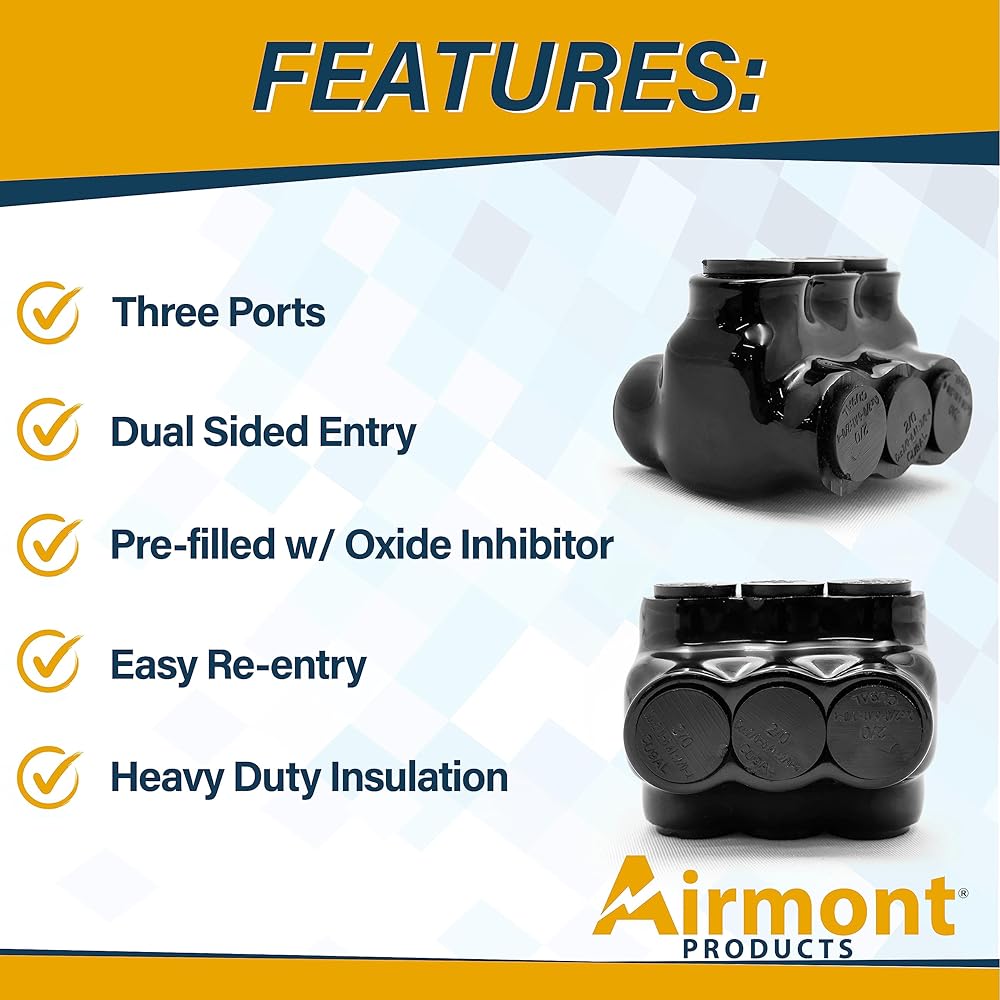 • معزولة: يتم عزل موصلات التوصيل الخاصة بمنتجات Airmont بمطاط عازل عالي التحمل وطلاء سميك من الفينيل لضمان الأداء الأمثل والاستخدام طويل الأمد.