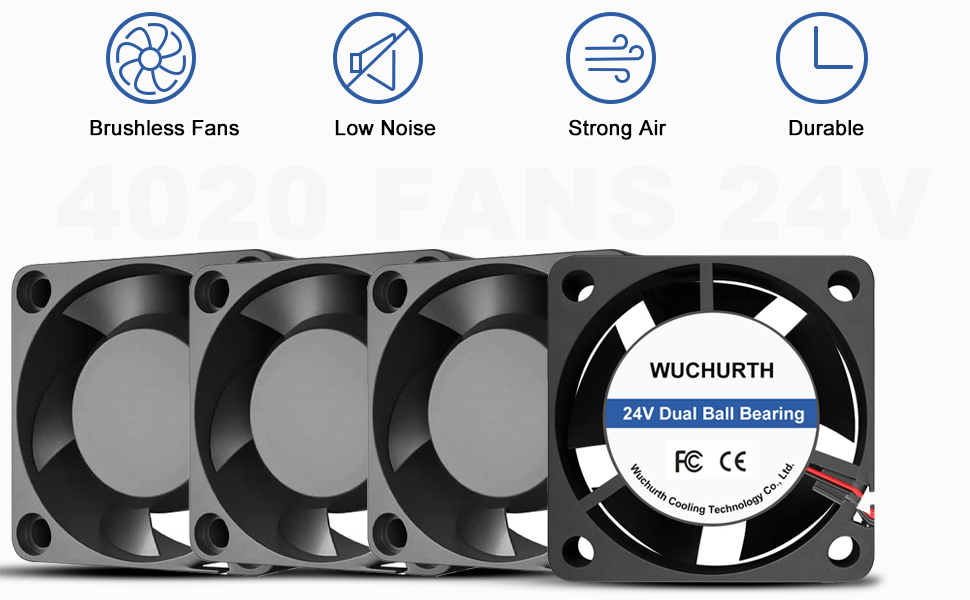 4 عبوات 4020 مروحة 24 فولت محمل كروي مزدوج، مراوح تبريد قوية بدون فرش لتدفق الهواء 40 مم × 40 مم × 20 مم مع موصل 2Pin للطابعة ثلاثية الأبعاد واستبدال الأجهزة الإلكترونية الأخرى