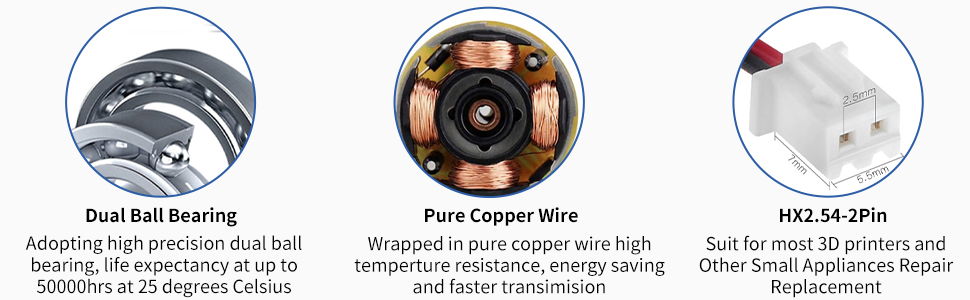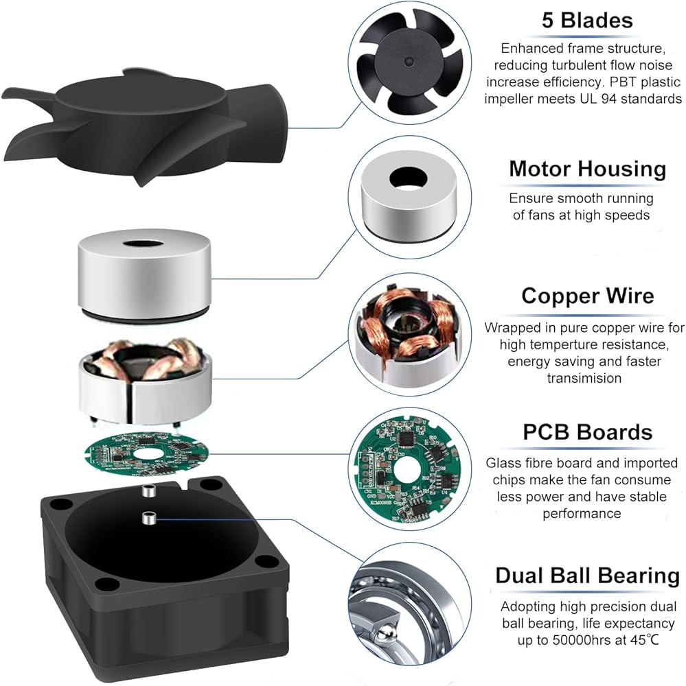 【𝐑𝐞𝐥𝐢𝐚𝐛𝐥𝐞 𝐌𝐚𝐭𝐞𝐫𝐢𝐚𝐥】مبيت مروحة 4020 مصنوع من مادة PBT المتينة التي تتوافق مع معيار UL94، وهو ليس من السهل أن يتشوه أو ينكسر. وملف المحرك مصنوع من النحاس النقي، الذي يتميز بخصائص مقاومة درجات الحرارة العالية، والنقل السريع وتوفير الطاقة.