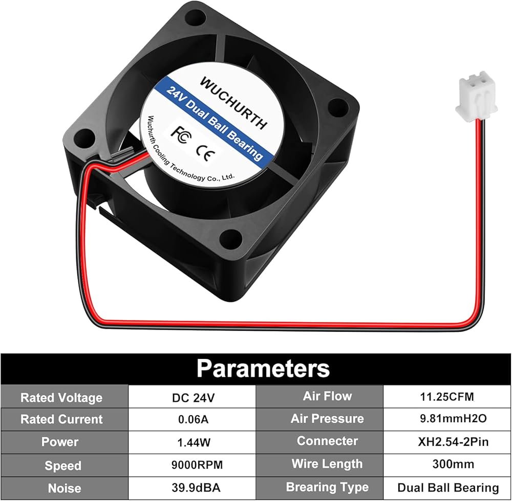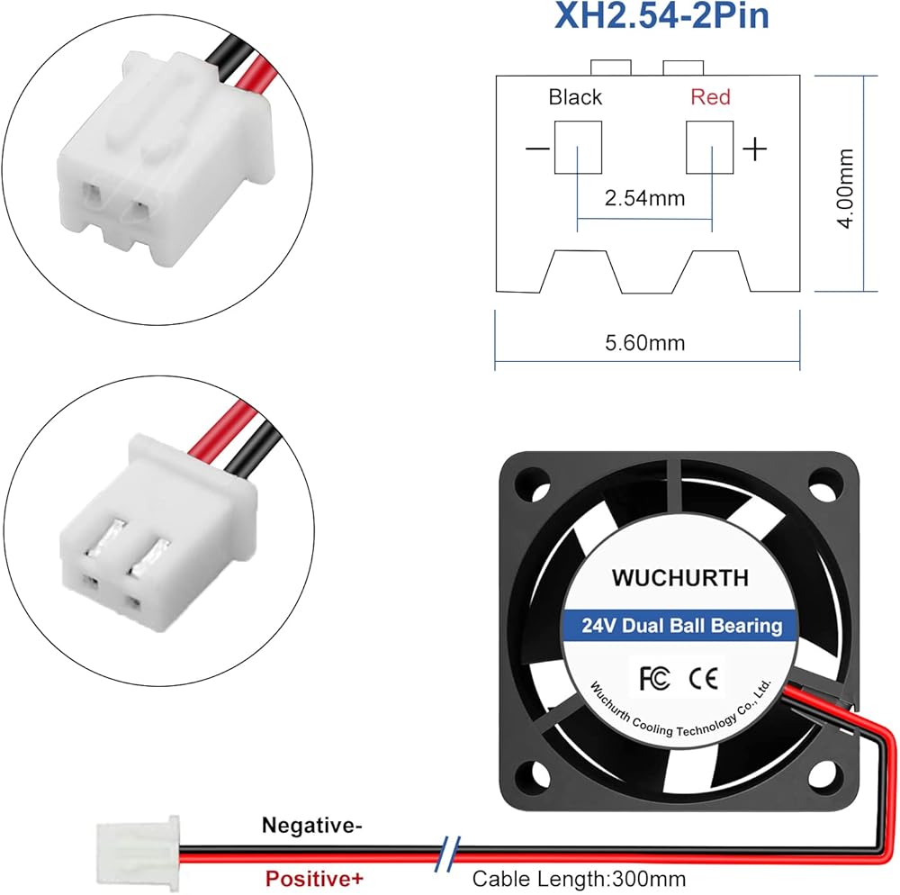 【𝐒𝐩𝐞𝐜𝐢𝐟𝐢𝐜𝐚𝐭𝐢𝐨𝐧】الجهد المقنن: تيار مستمر 24 فولت؛ الحالي: 0.06A. الطاقة: 1.44 واط؛ السرعة: 9000 دورة في الدقيقة؛ ضغط الهواء: 9.81 ممH₂O؛ حجم الهواء: 11.25 قدم مكعب في الدقيقة؛ الضوضاء: 39.9 ديسيبل؛ الموصل: XH2.54-2pin؛ طول الكابل: 300 ملم.