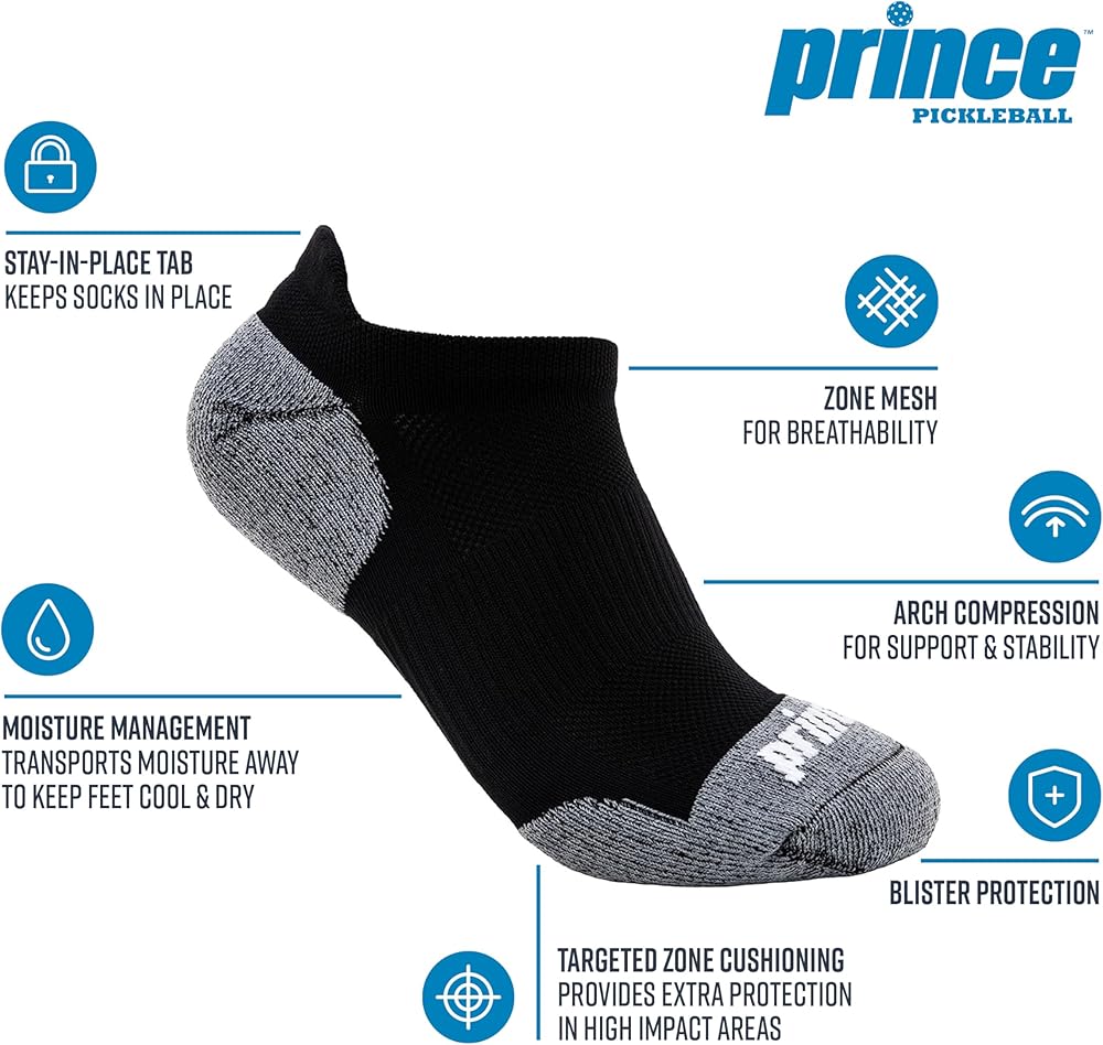 نمط متعدد الاستخدامات: ارفع خزانة ملابسك الرياضية مع جوارب Prince Compression Socks، التي تجمع بين العملية والتصميم الأنيق الذي يكمل نمط حياتك النشط داخل وخارج الملعب.