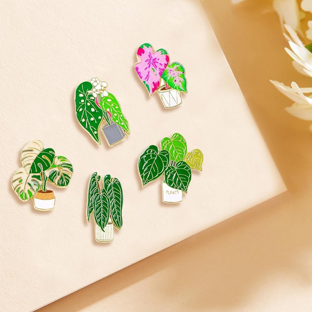 5pcs مجموعة بروش النبات لطيف، دبابيس المينا النباتات الكرتون، دبابيس النبات بروش النبات الأخضر، دبوس شارة لطيف طية صدر السترة، شارات دبوس الإبداعية لحقائب الملابس وحقائب الظهر والسترات قبعة الديكور