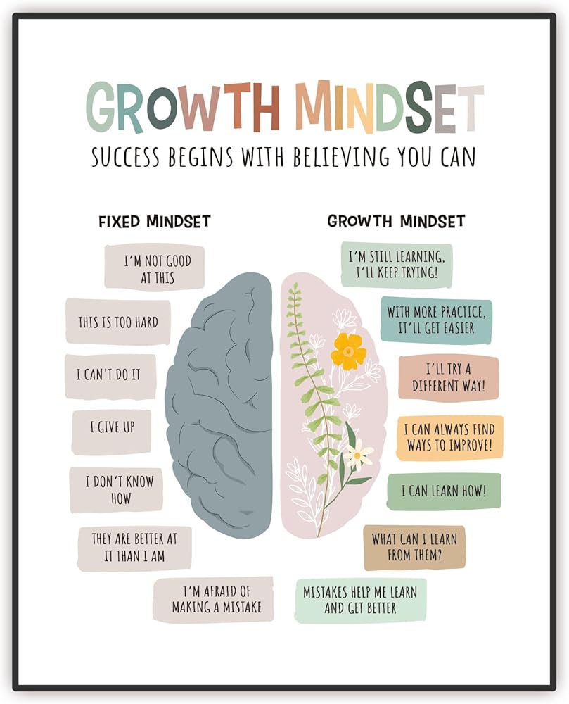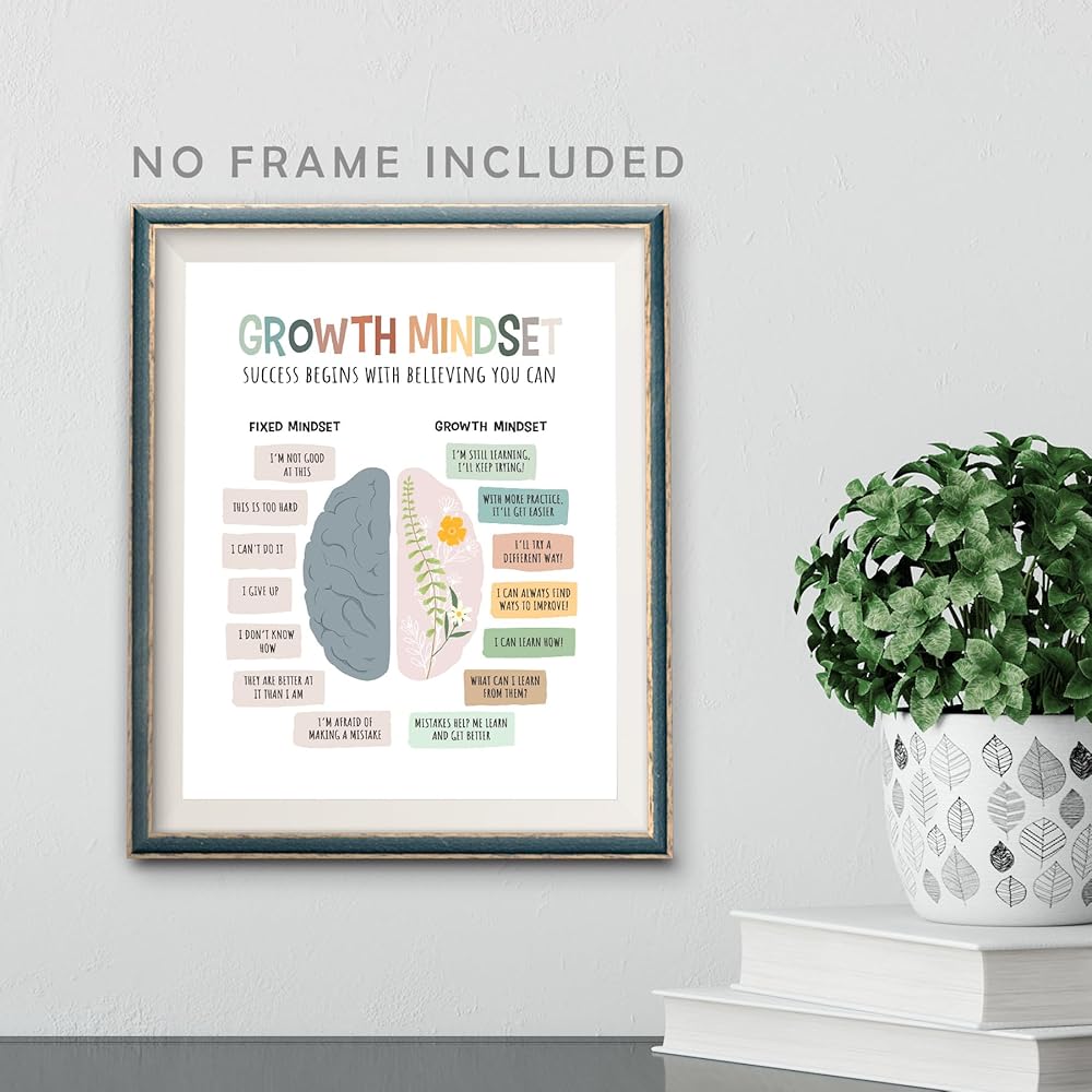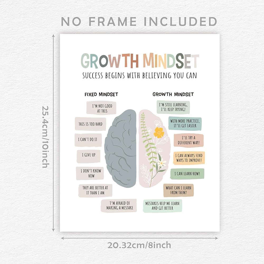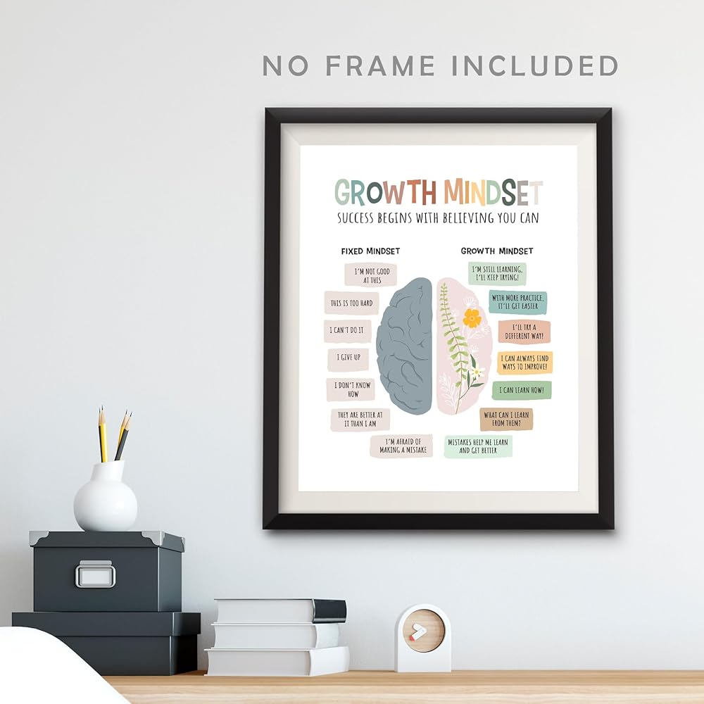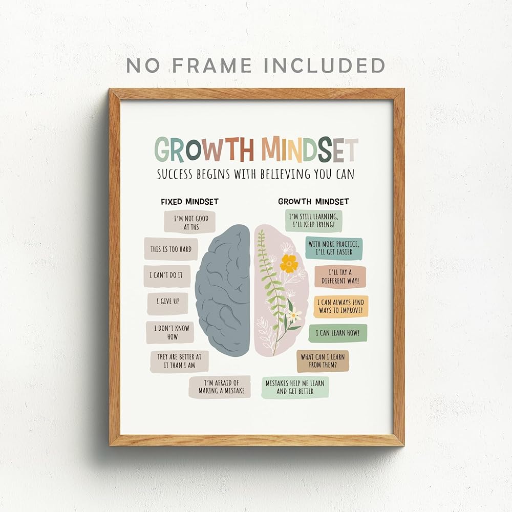 ملصق الصحة العقلية لعقلية النمو، فن الفصل الدراسي الإيجابي، فن تأكيد الأطفال، ديكور جدار العلاج في مكتب الفصل الدراسي، مطبوعات تعليمية للأطفال لتهدئة ديكورات الزوايا، غير مؤطرة (8 × 10 بوصة)