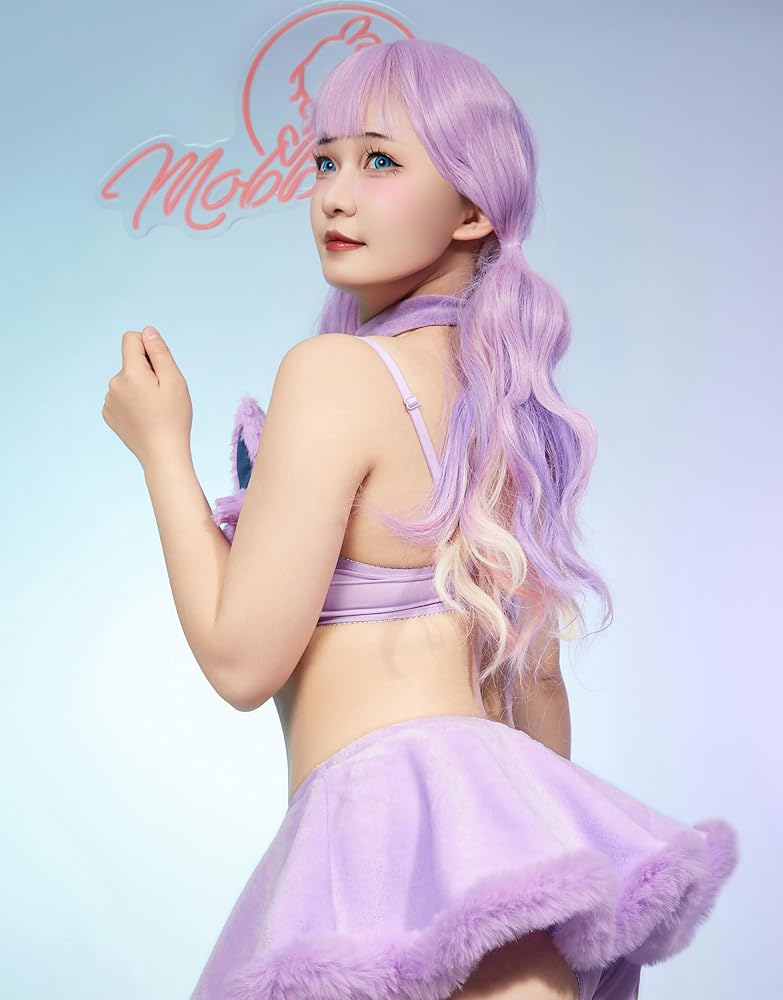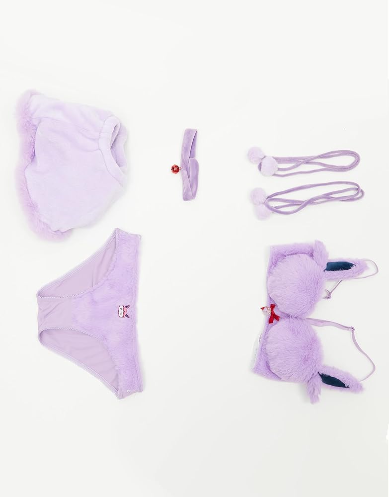 مجموعة ملابس داخلية نسائية من Anime Cosplay بيجامة أرجوانية غامضة ملابس منزلية حمالة صدر ولباس داخلي فروي مع تنورة ضيقة