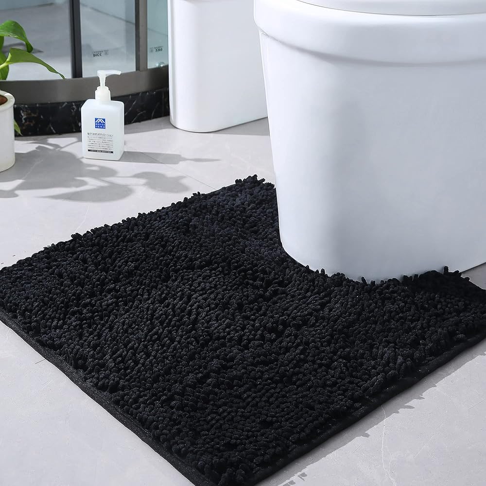 DESIGNED TO FIT BASE OF THE TOILET: Our U-shaped toilet mat can fits perfectly to most contour toilet. The coverage of the toilet rug can prevent liquid from splashing on the floor.
