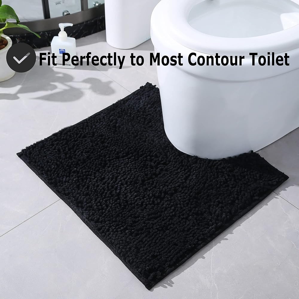 Chenille Toilet Rugs U-Shaped, Extra Soft and Absorbent Bathroom Rugs, Non-Slip Plush Shaggy Toilet Bath Mat for Bathroom, Machine Wash Dry, Contour Bath Rugs for Toilet Base