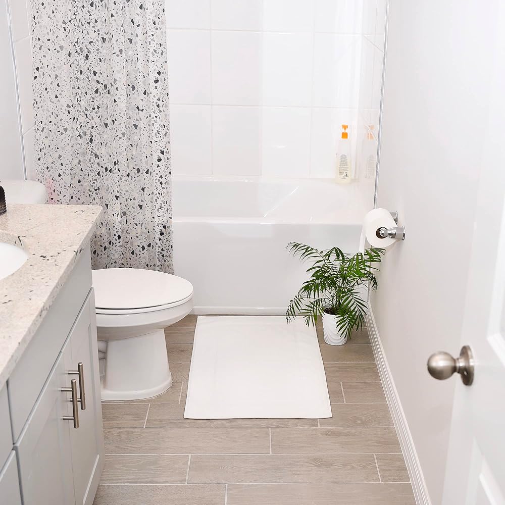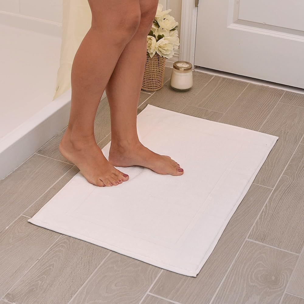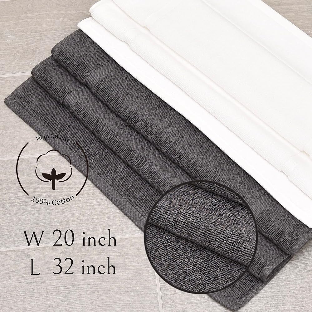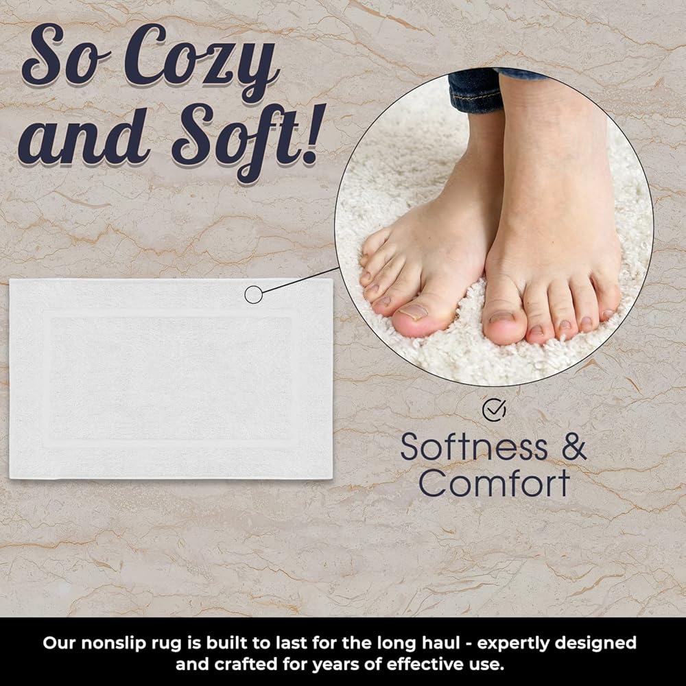 • مريحة ومريحة: مصنوعة من القطن المغزول حلقيًا بنسبة 100% لذا فهي سجادة حمام ناعمة جدًا، سجادة الحمام الخاصة بنا تبدو فاخرة كما تبدو. دلل نفسك بساط الحمام المضاد للانزلاق الذي يعالج قدميك بشكل صحيح سواء كانت مبللة أو جافة.